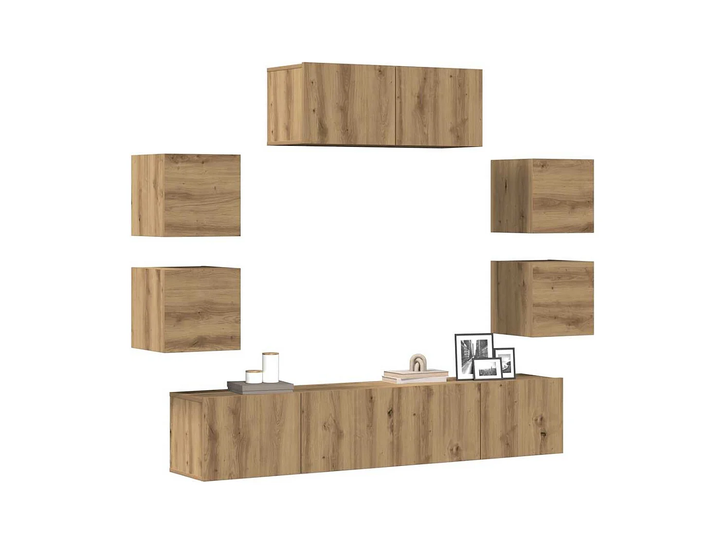 Mueble para TV | Gabinete de TV | Mueble de salón de pared madera contrachapada artesanal 7 piezas