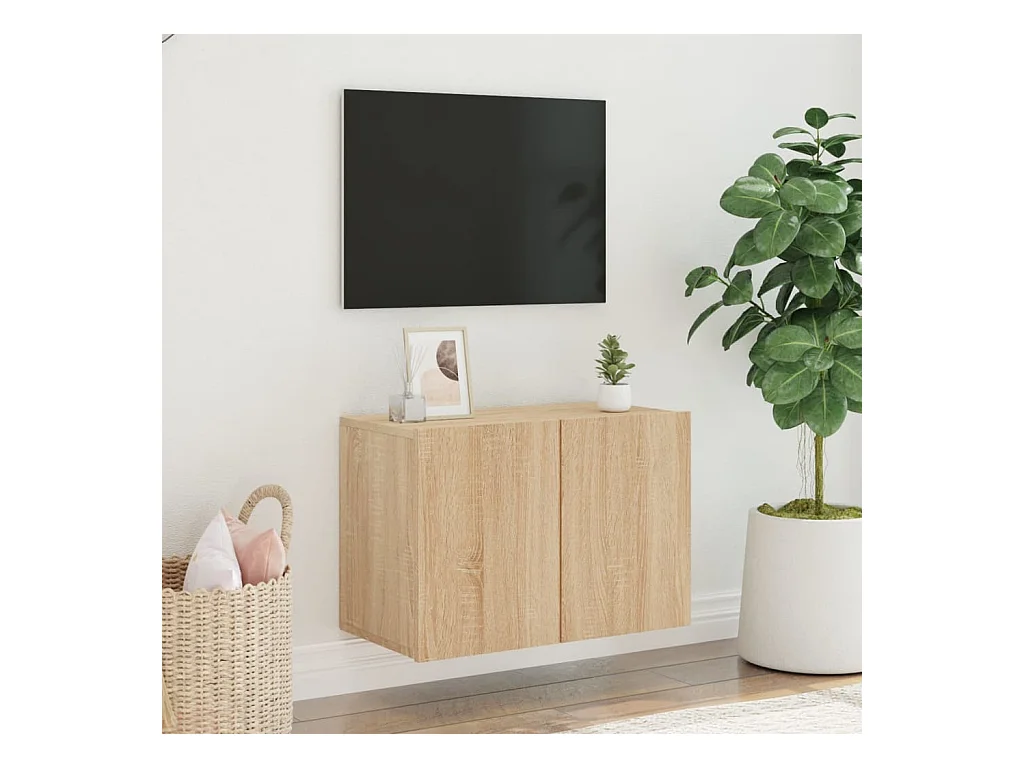 Mueble de TV | Mueble de salón de pared con luces LED roble Sonoma 60x35x41 cm
