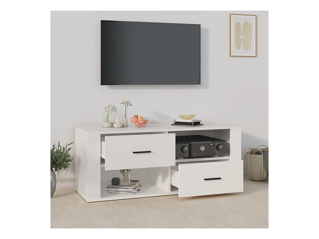 Mueble para TV | Gabinete de TV | Mueble de salón madera contrachapada blanco 100x35x40 cm