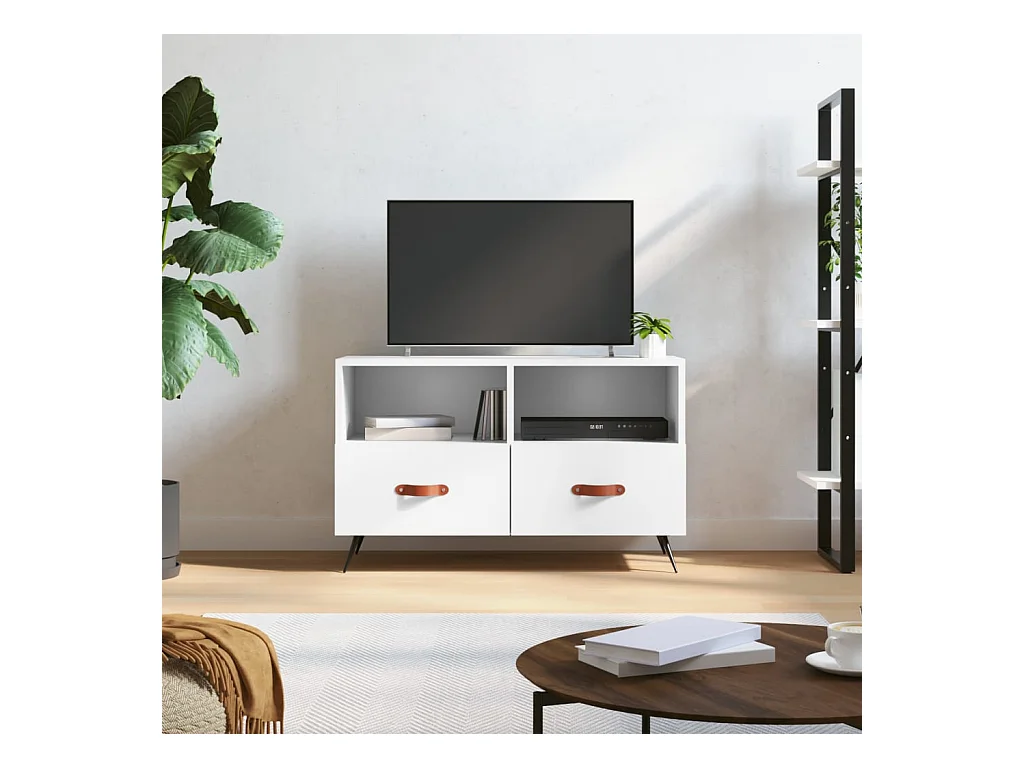 Mueble de TV | Mueble de salón madera contrachapada blanco brillo 80x36x50 cm