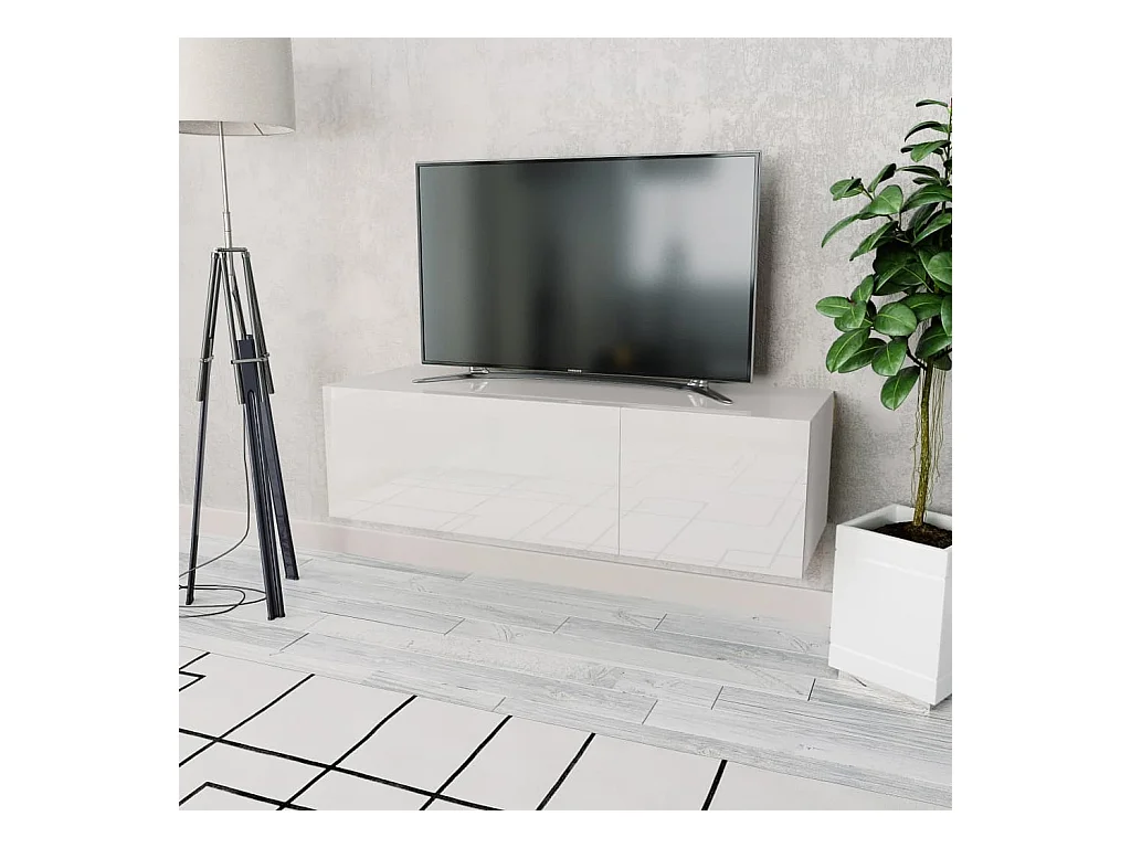 Mueble para TV | Gabinete de TV | Mueble de salón madera contrachapada blanco brillo 120x40x34 cm