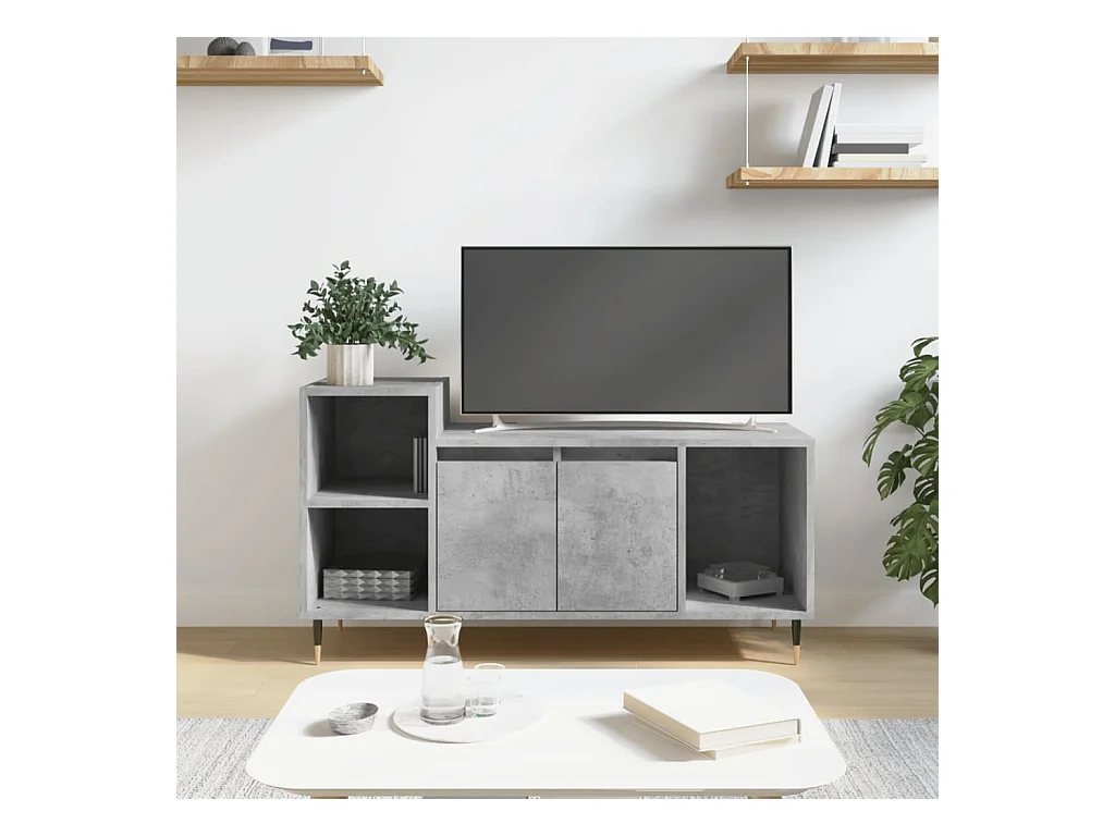 Mueble para TV | Gabinete de TV | Mueble de salón madera contrachapada gris hormigón 100x35x55 cm