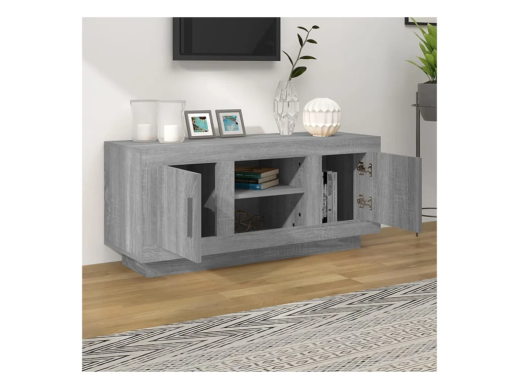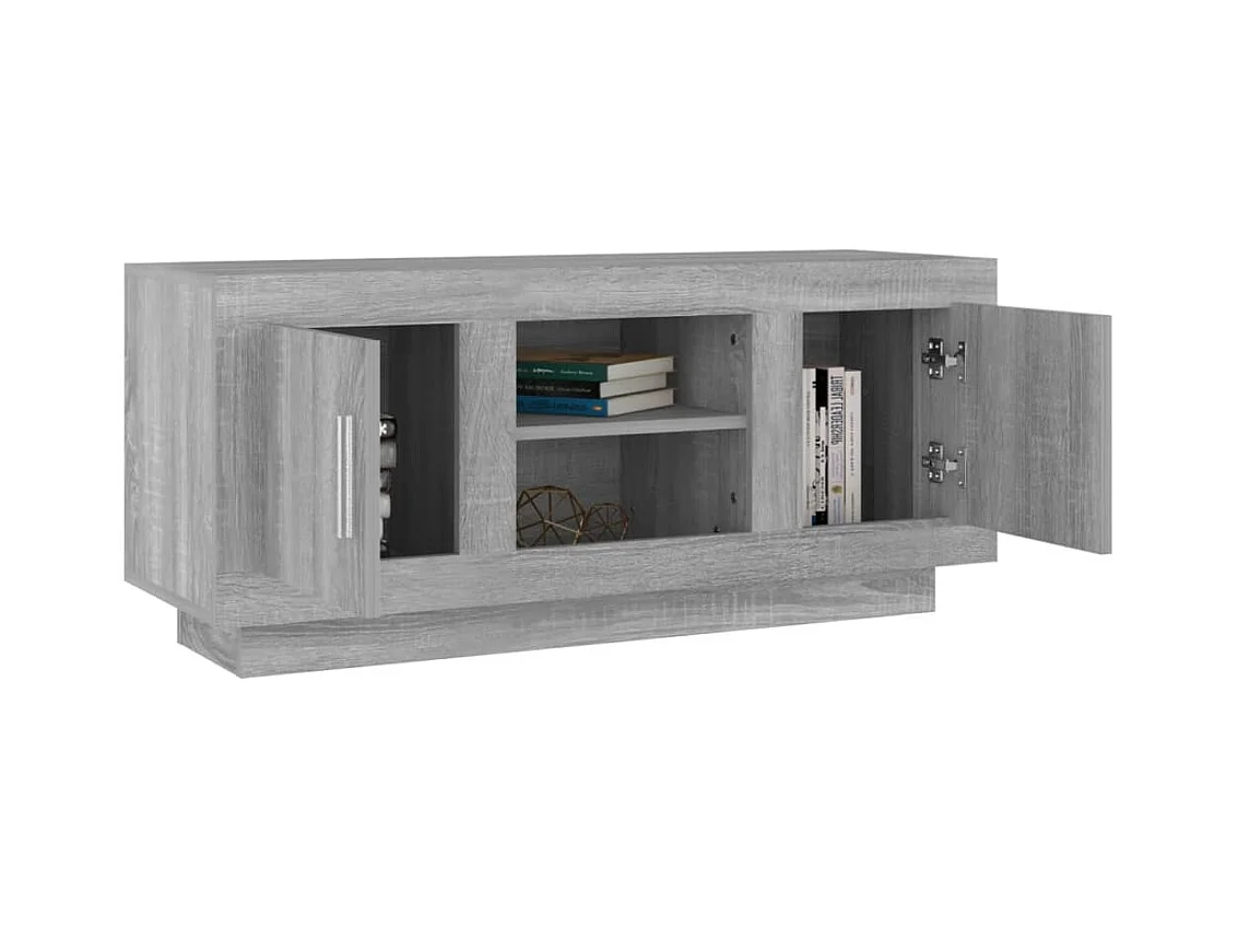 Mueble TV | Gabinete de TV | Mueble de salón con puertas contrachapada gris Sonoma 102x35x45 cm