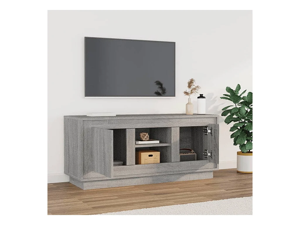 Mueble TV | Gabinete de TV | Mueble de salón con puertas contrachapada gris Sonoma 102x35x45 cm