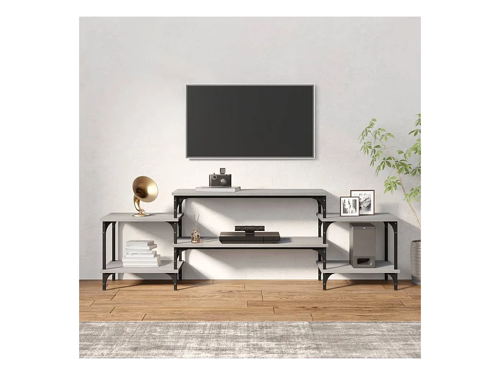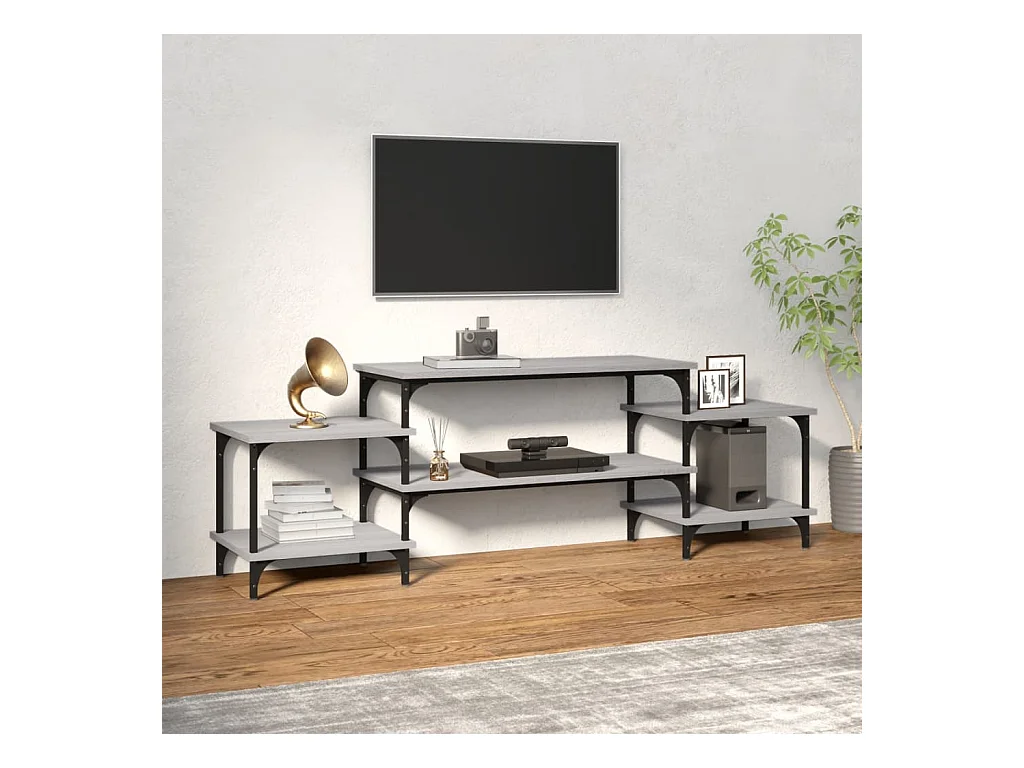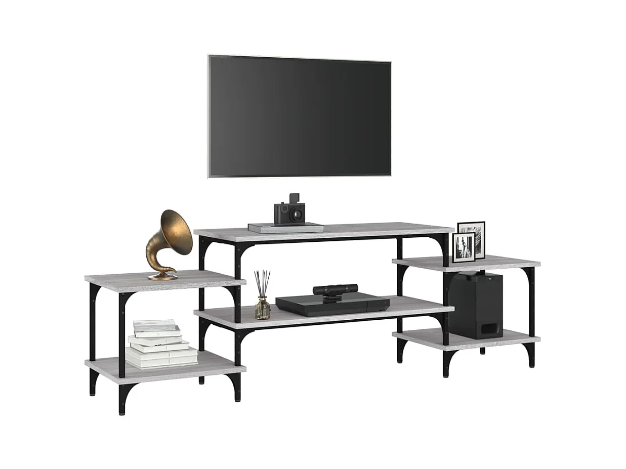 Mueble TV | Gabinete de TV | Mueble de salón madera ingeniería y hierro gris Sonoma 201x35x45 cm