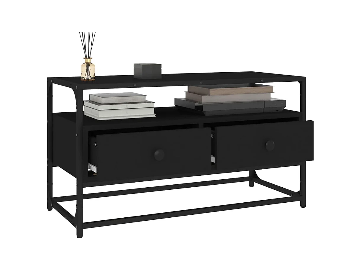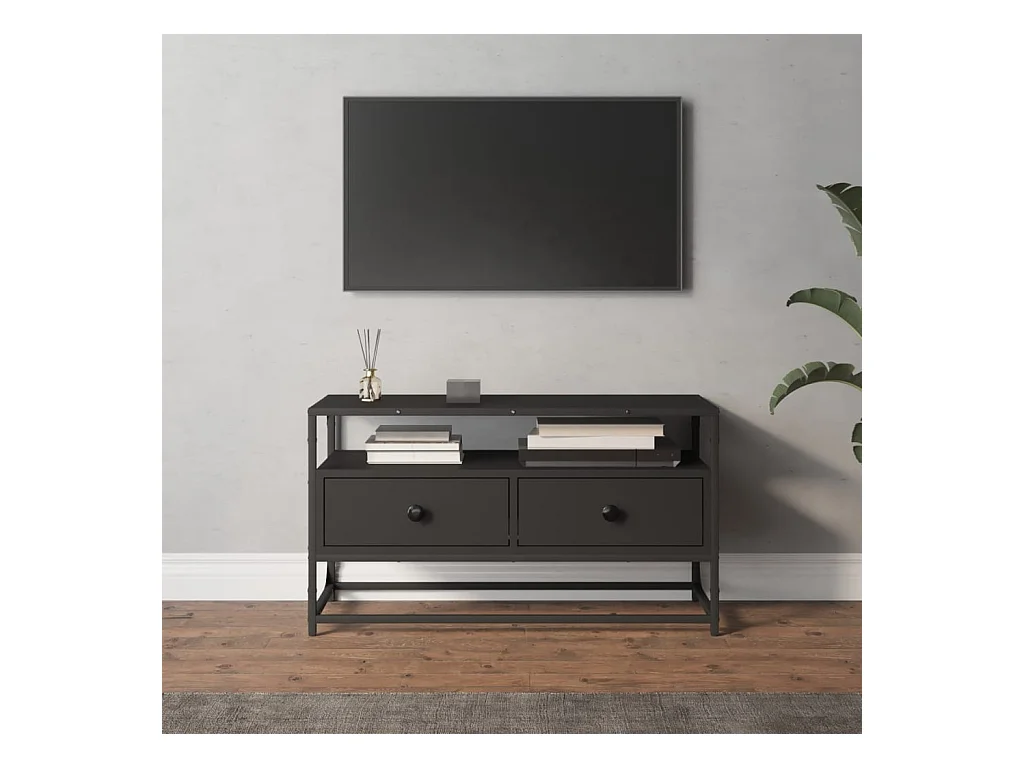 Mueble de TV | Mueble de salón hierro y madera contrachapada negro 121x35x45 cm