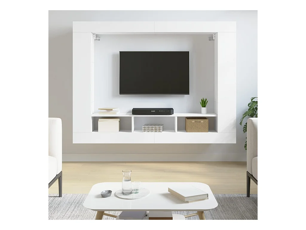 Muebles de TV | Gabinetes de TV | Muebles de salón 4 uds. con almacenaje "ODDA" blanco madera pino