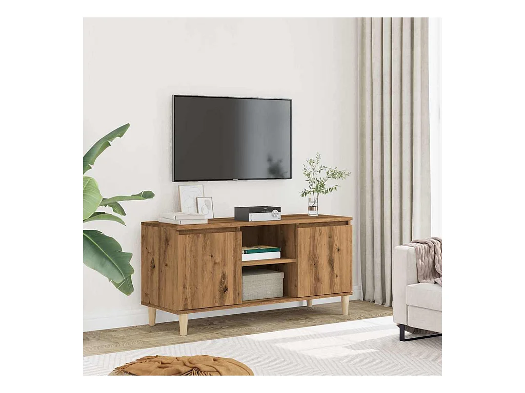 Mueble de TV | Mueble de salón patas madera maciza roble Sonoma 103,5x35x50 cm