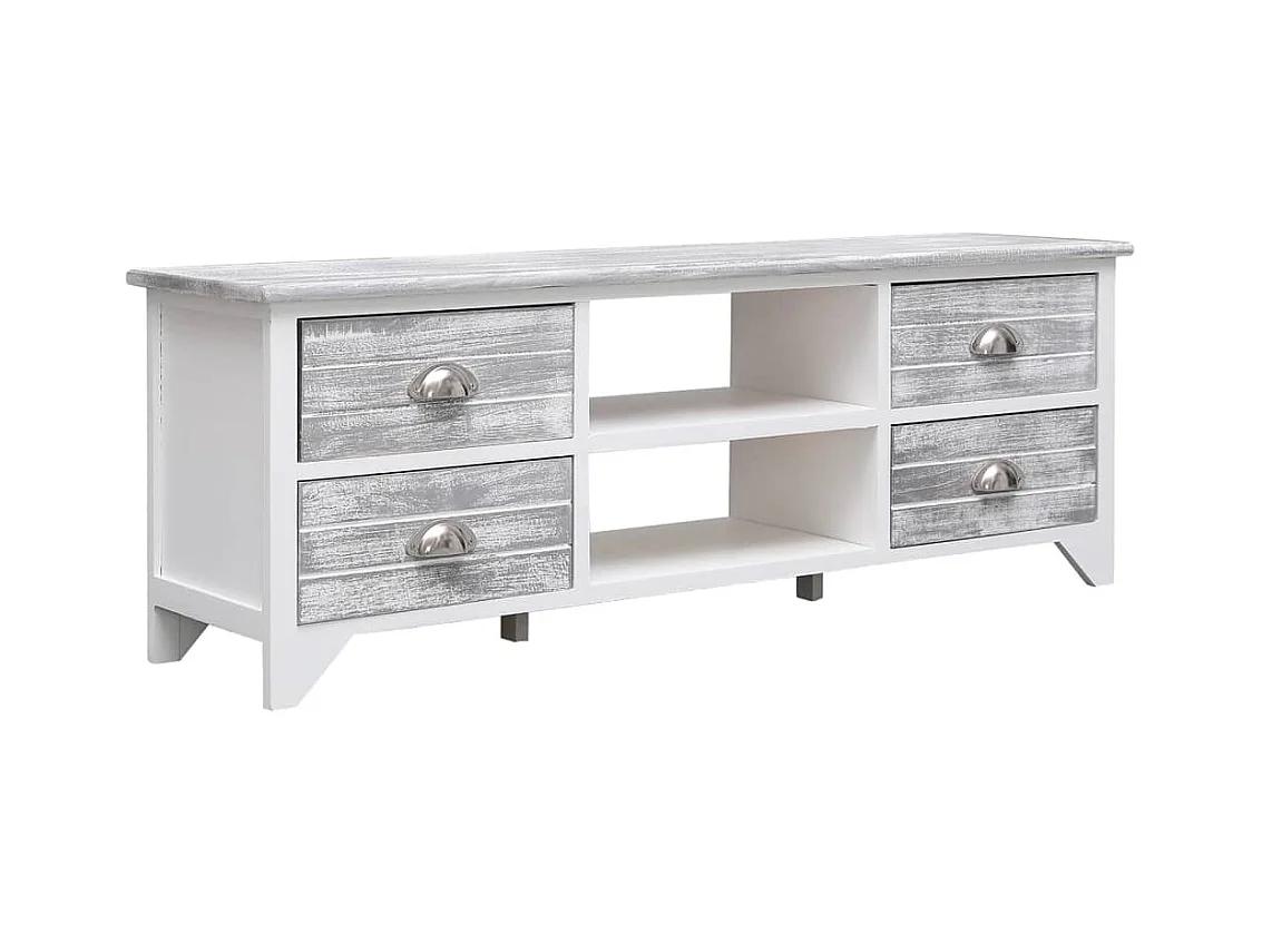 Mueble para TV | Gabinete de TV | Mueble de salón madera de paulownia blanco y gris 108x30x40 cm