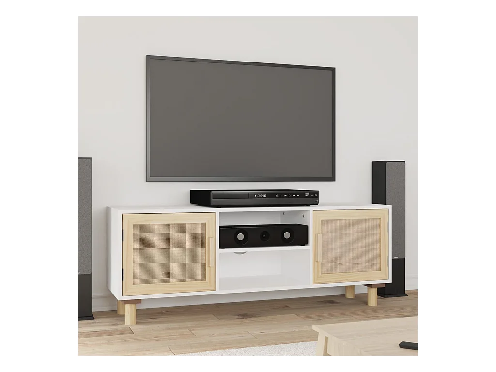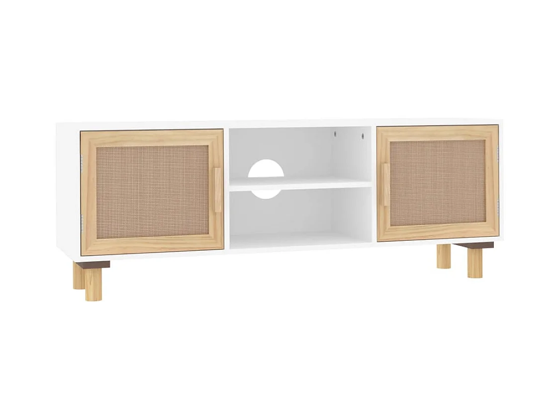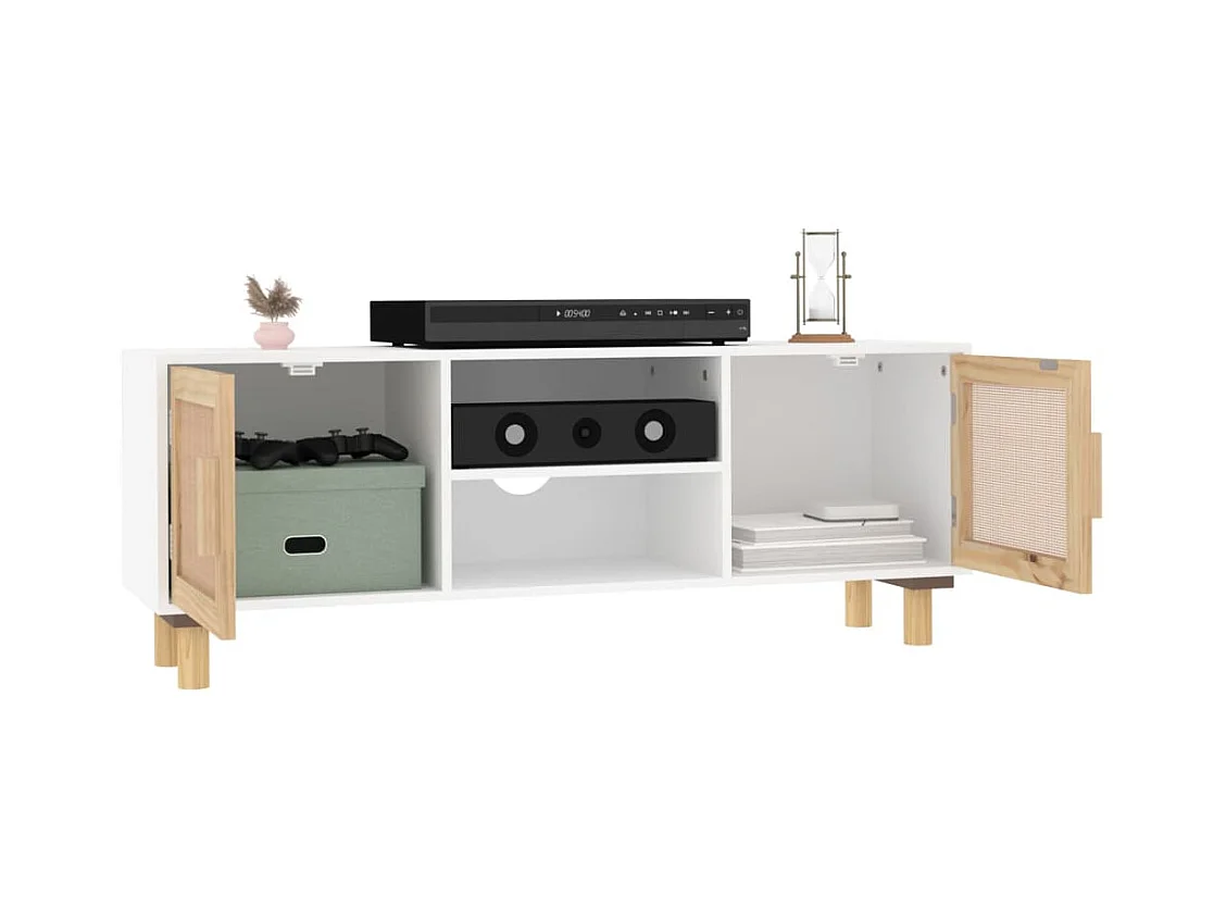 Mueble para TV | Gabinete de TV | Mueble de salón madera maciza pino y ratán natural 105x30x40 cm
