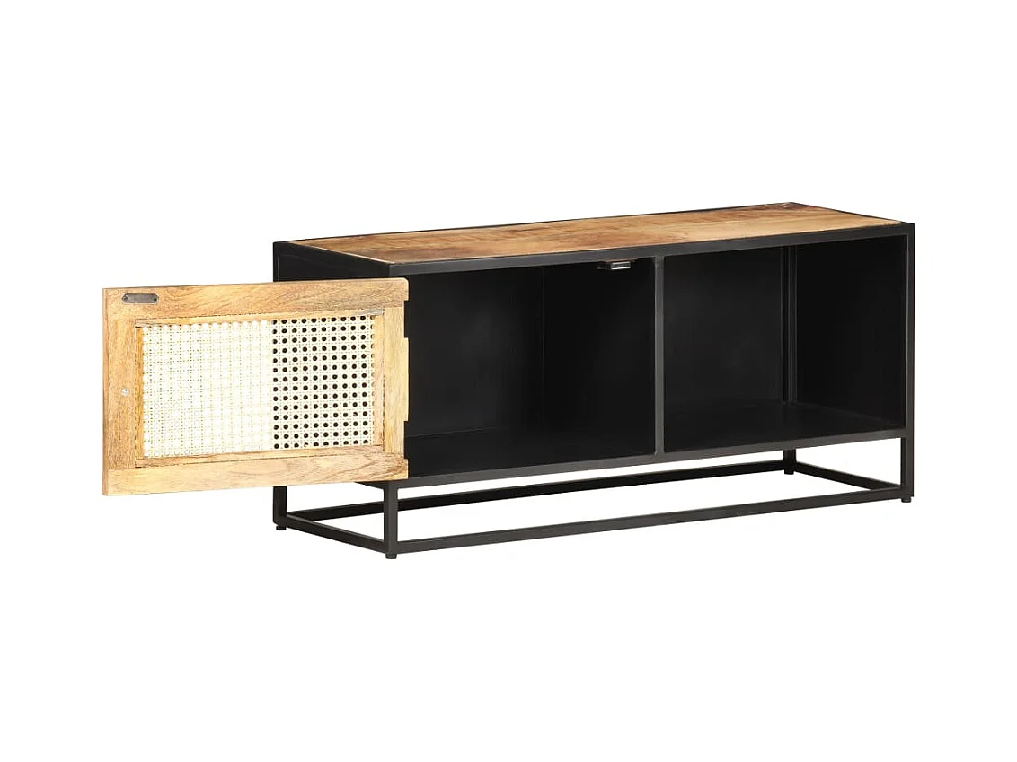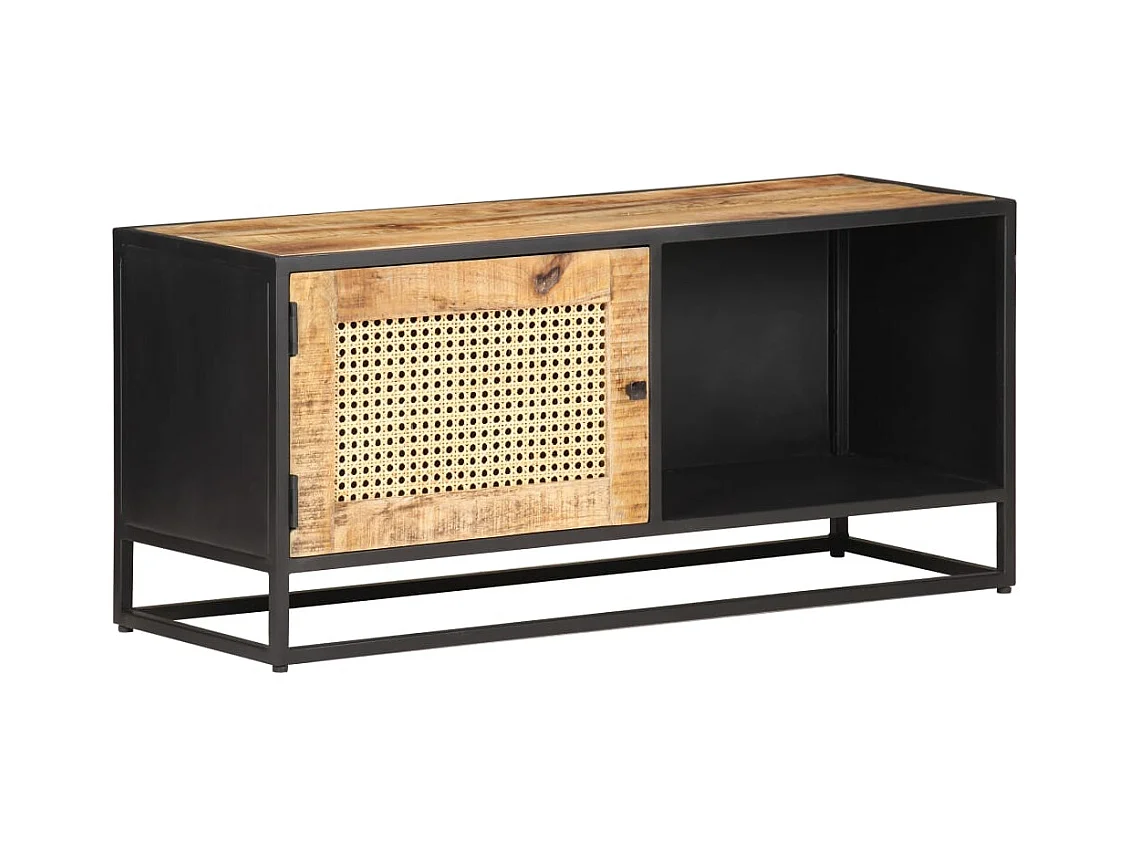 Mueble para TV | Gabinete de TV | Mueble de salón madera mango rugosa y caña natural 90x30x40 cm