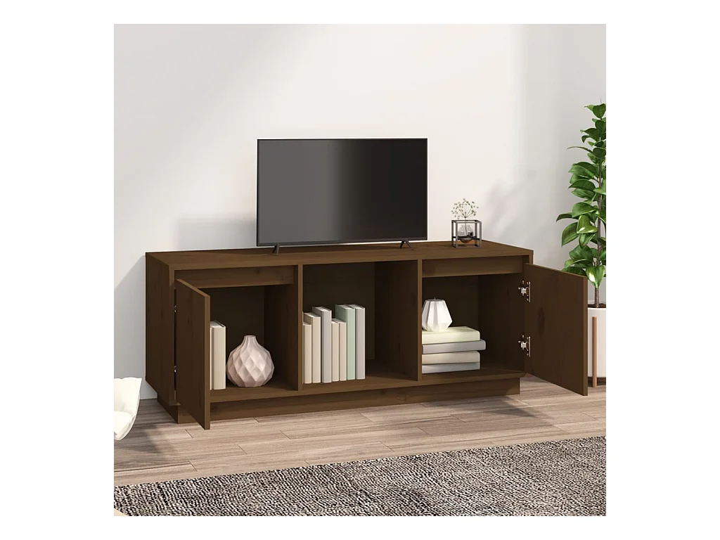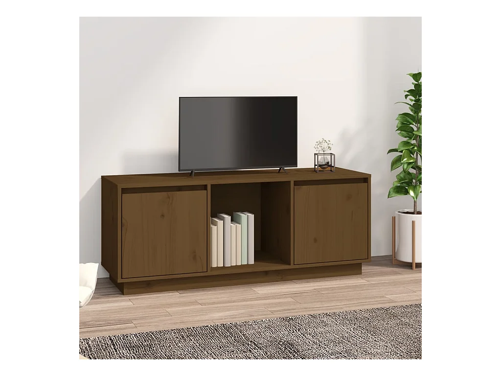 Mueble de TV madera maciza de pino marrón miel 110x35x40,5 cm ES28122