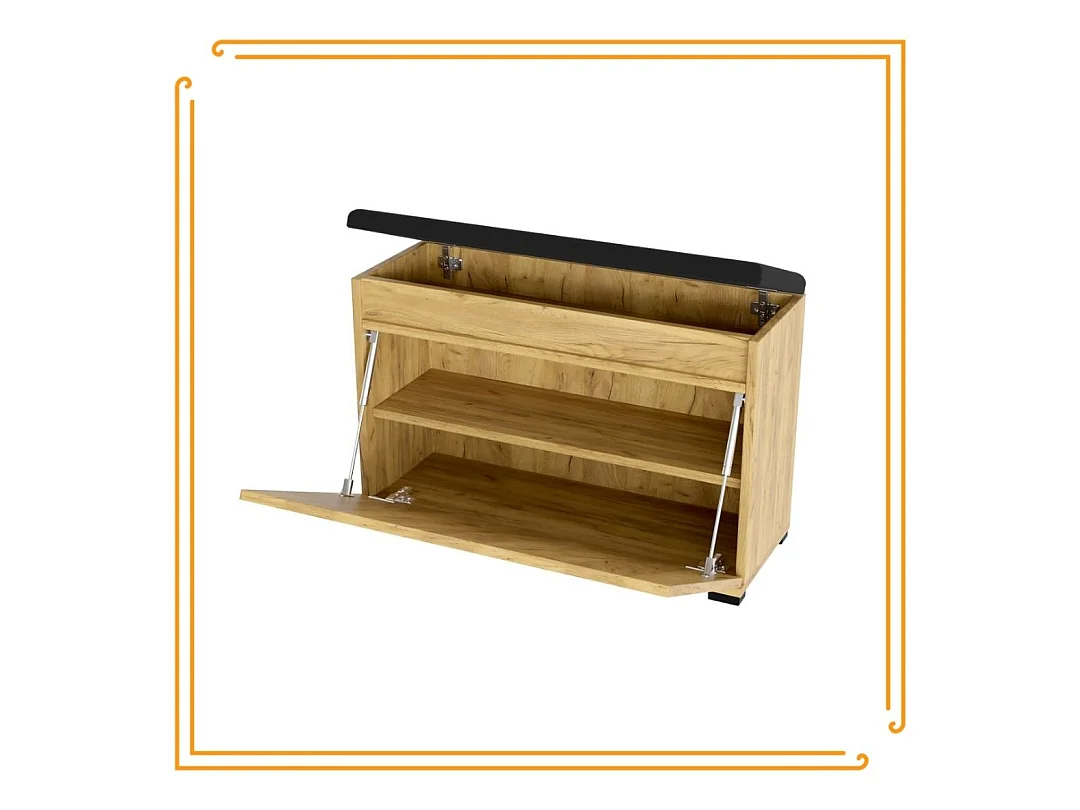 Mueble para zapatos 80 cm con almacenamiento, asiento tapizado, estante – Roble Negro