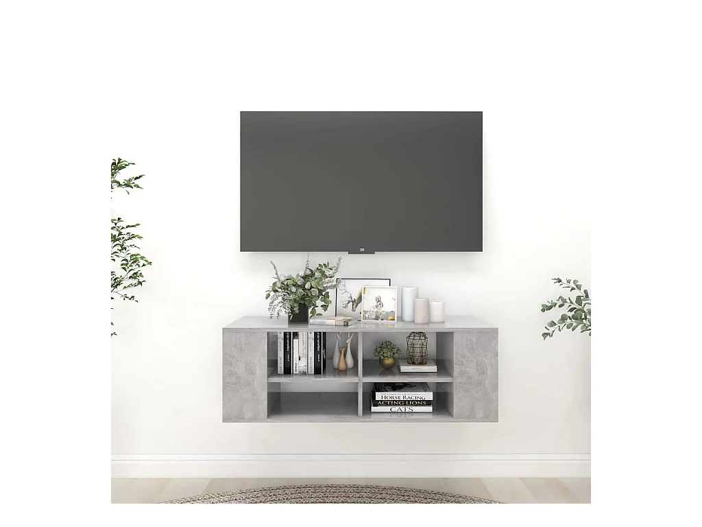Mueble pared TV | Gabinete de TV | Mueble de salón madera contrachapada gris hormigón 102x35x35 cm