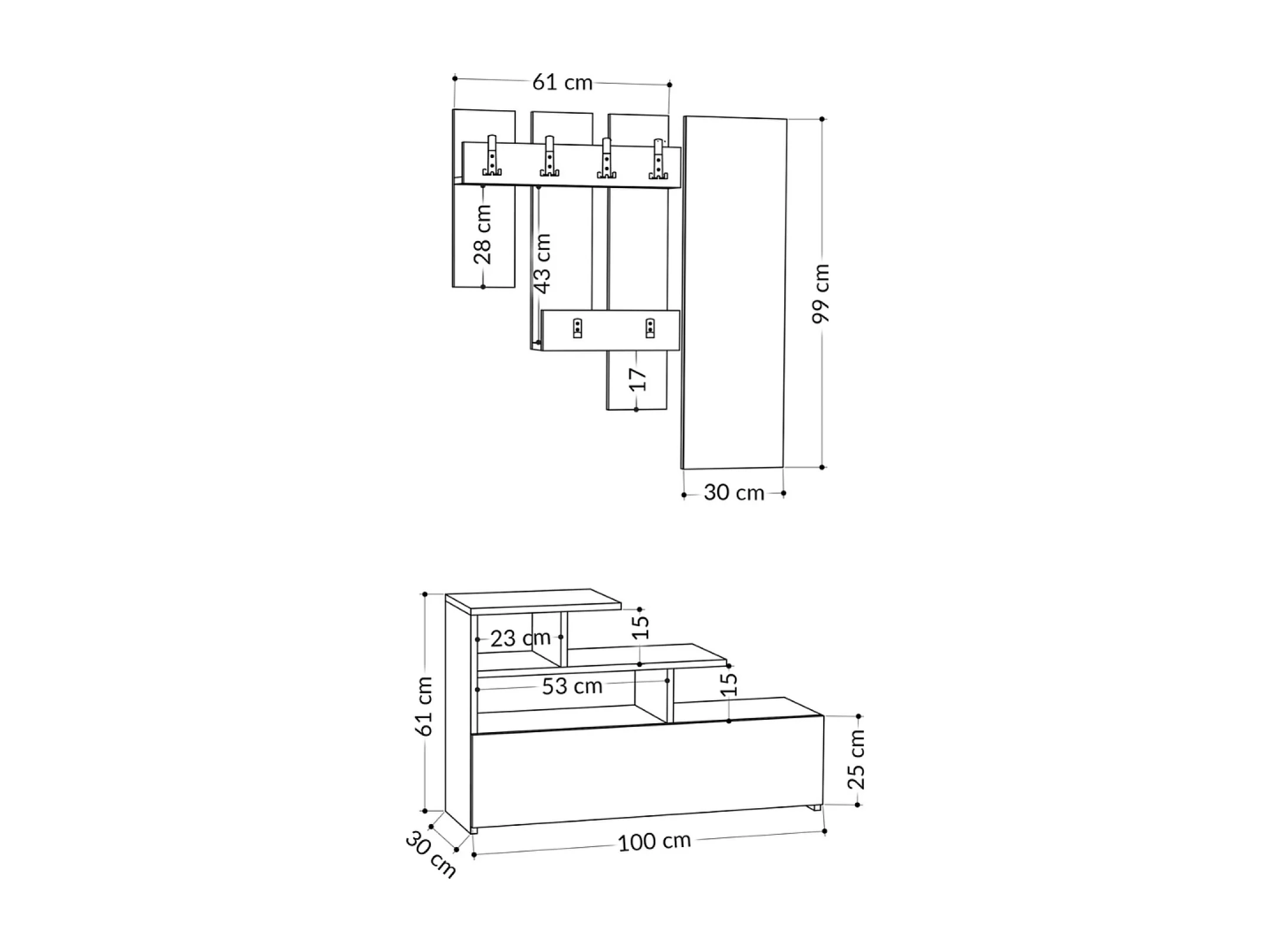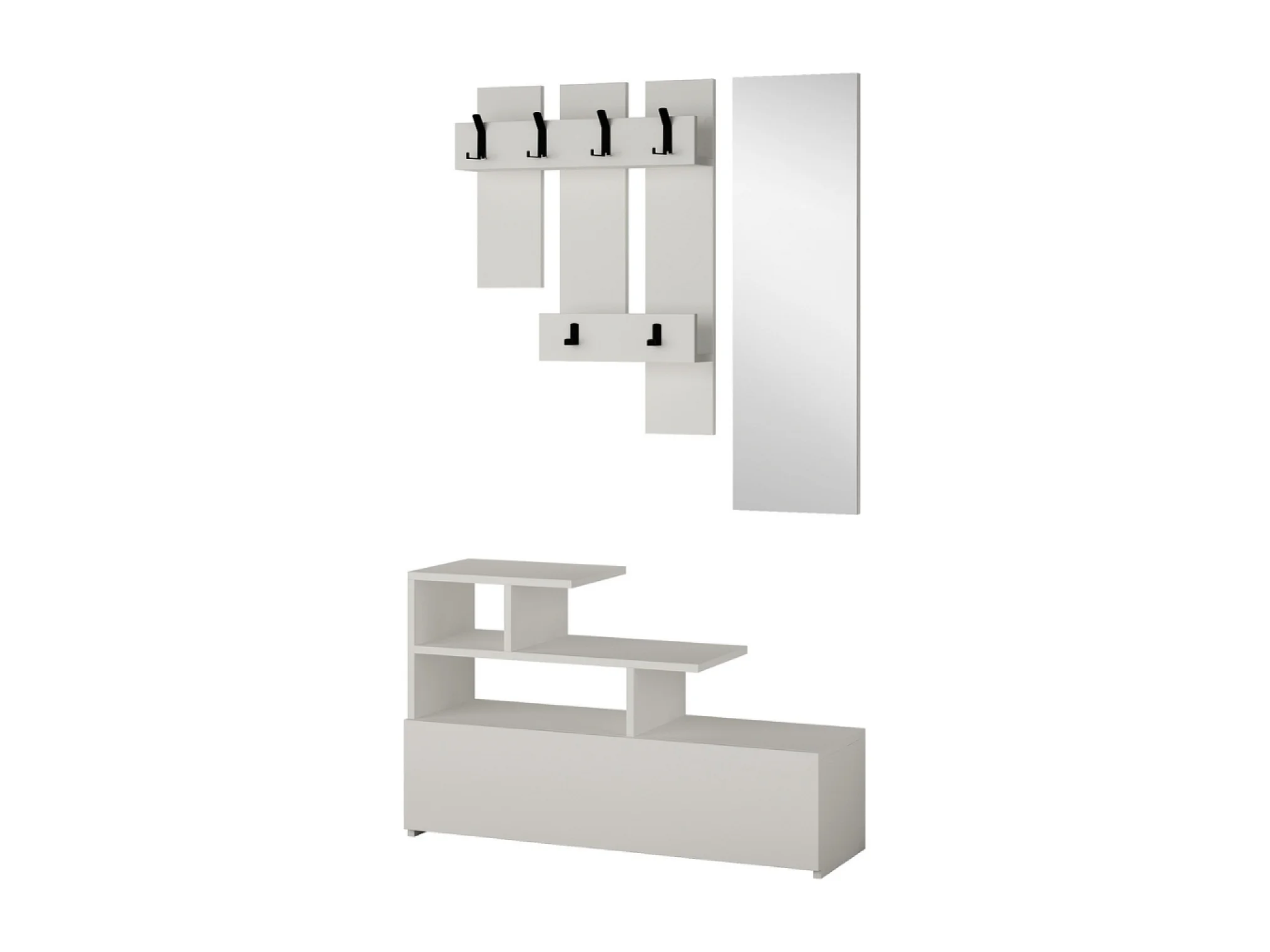 Mueble recibidor efecto madera con perchero, almacenaje y espejo MESTY