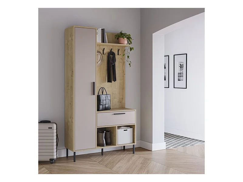 Mueble recibidor con perchero Vesta Roble Beige
