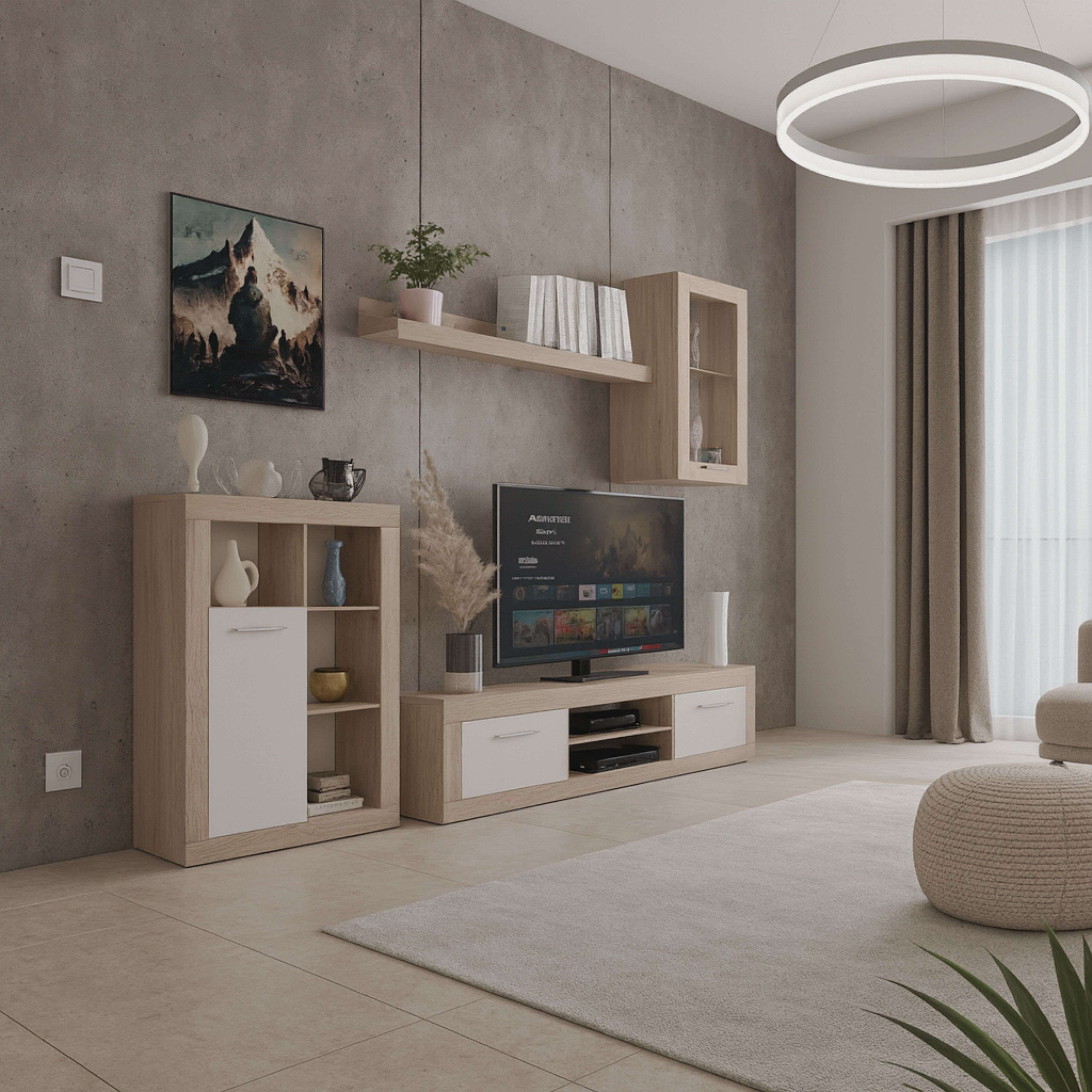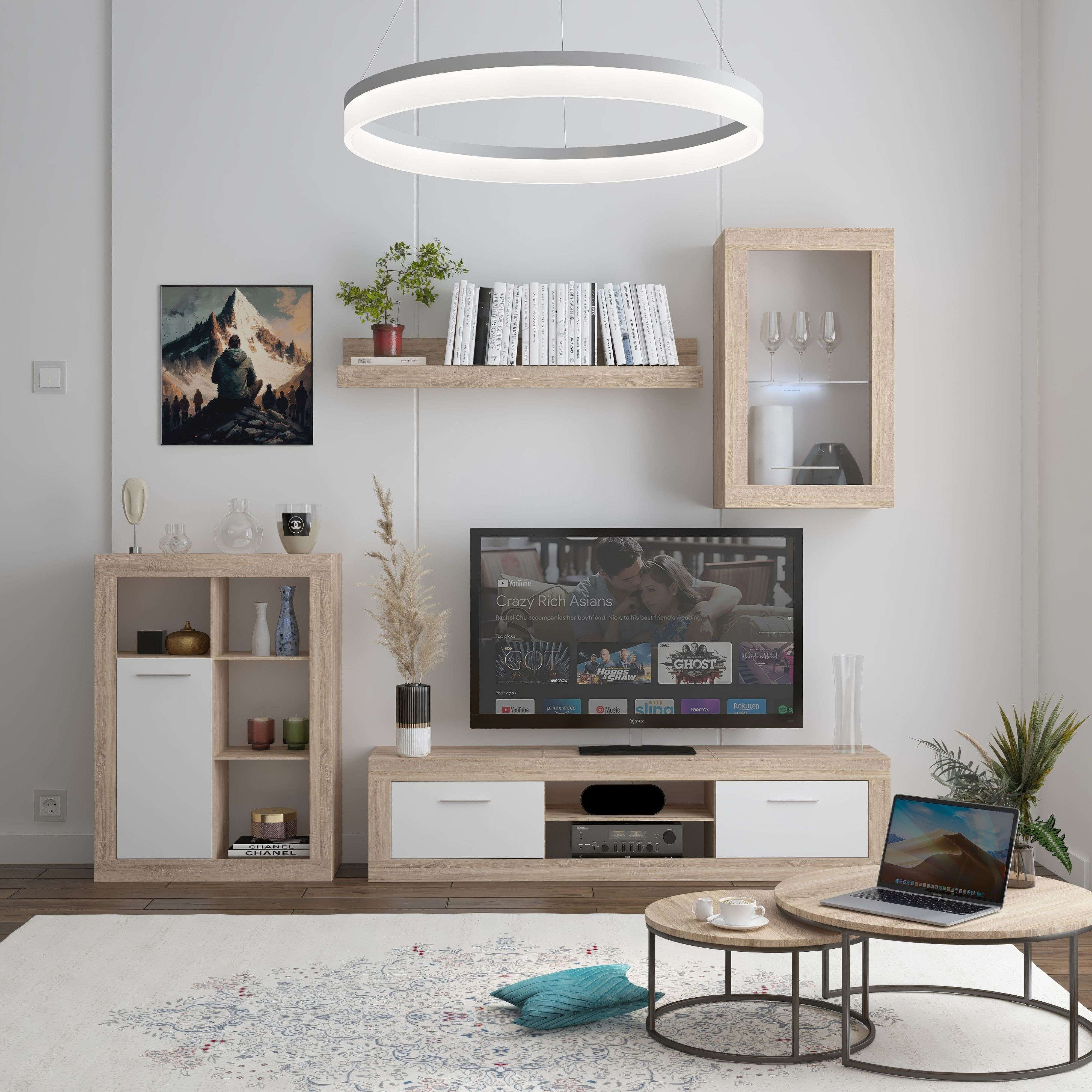 Mueble Salón Fera Moderno Roble Sonoma/Blanco 2 Puertas, 1 Estante 270 cm