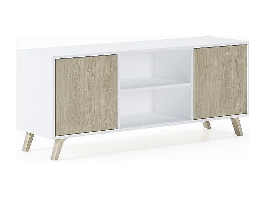 Mueble TV 140 Modelo WIND, color estructura Blanco, color puertas Roble, 137x40x57cm
