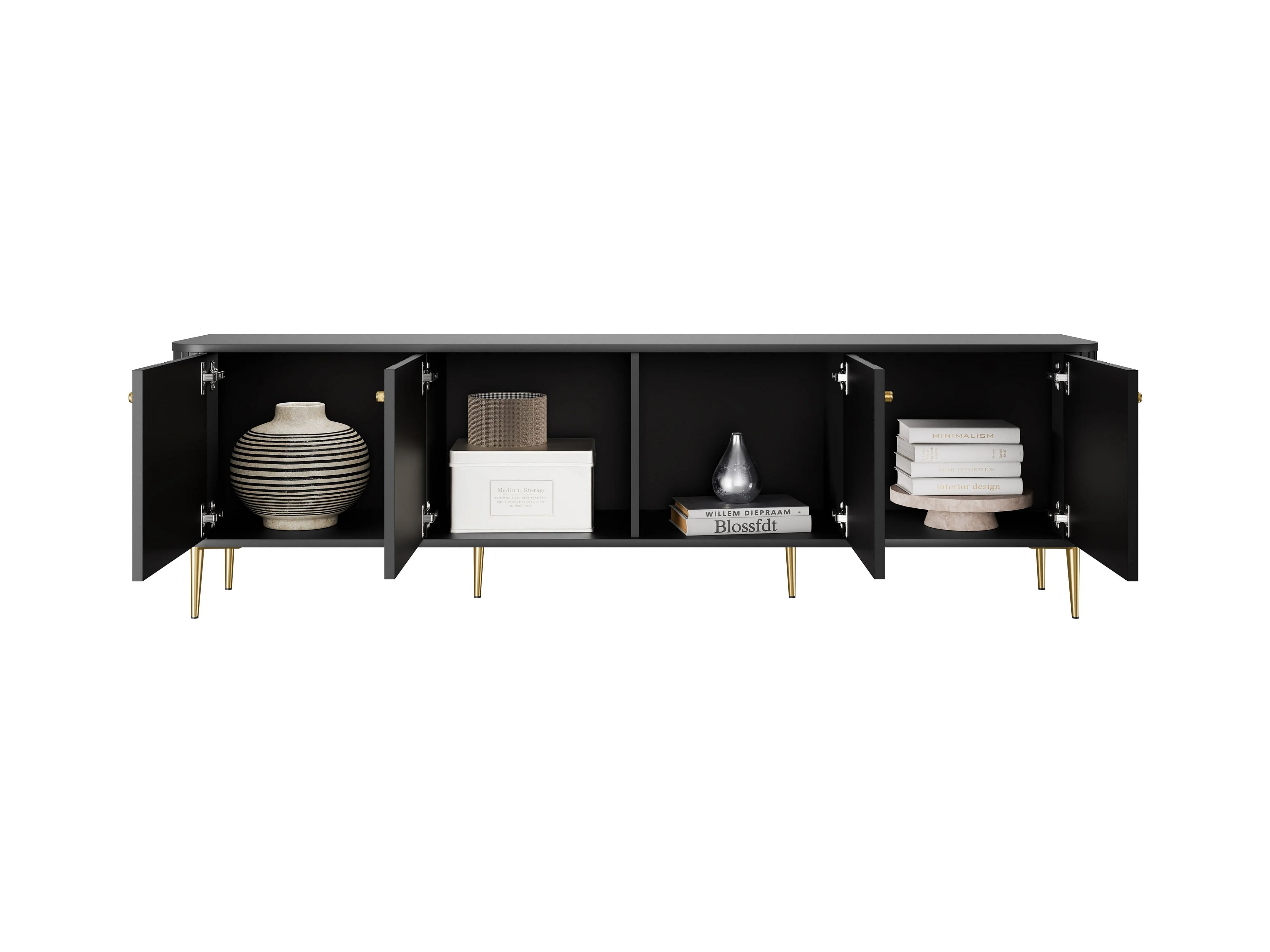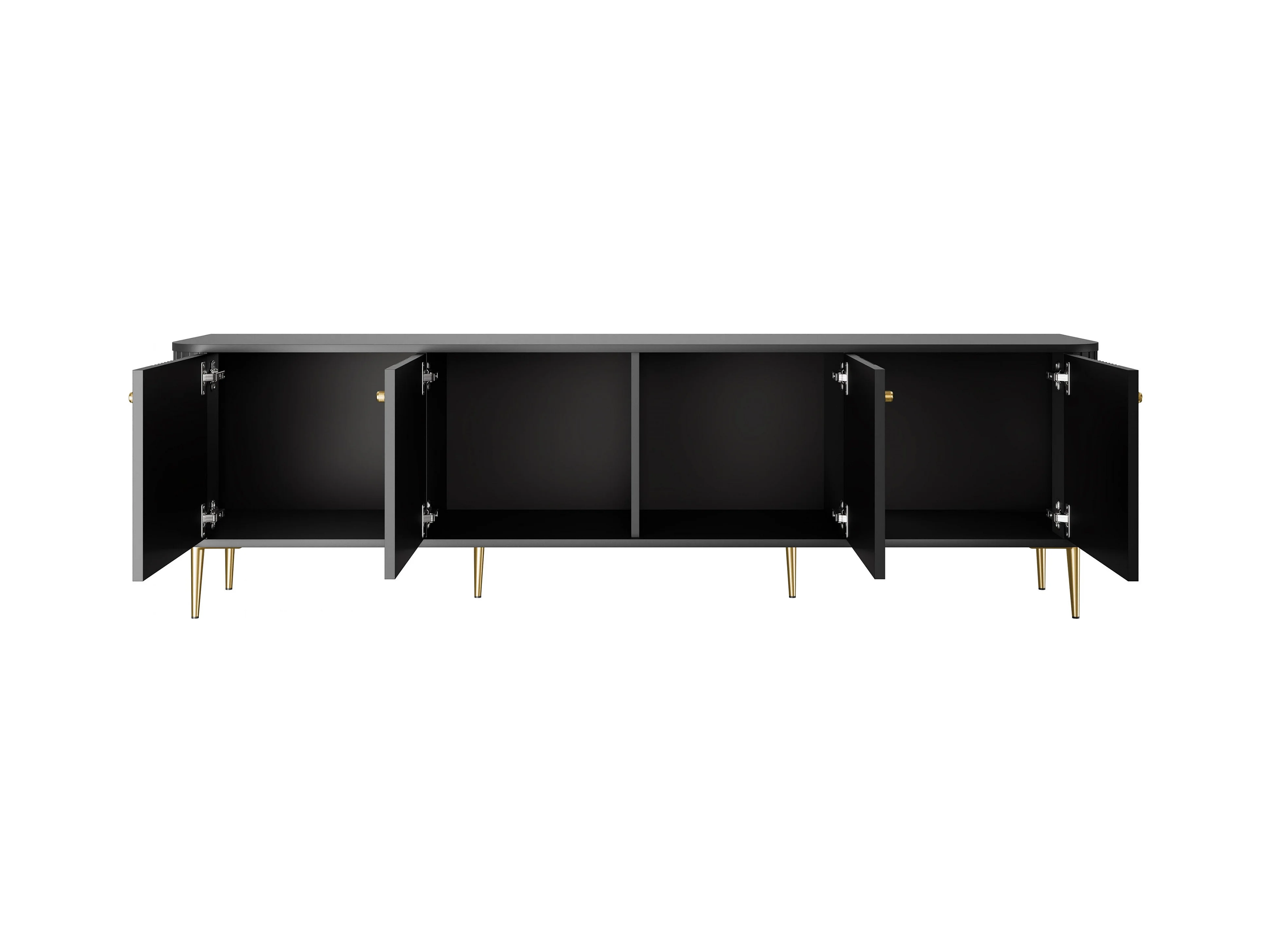 Mueble TV negro con 2 puertas y 2 cajones con pie de metal dorado 200x45 cm