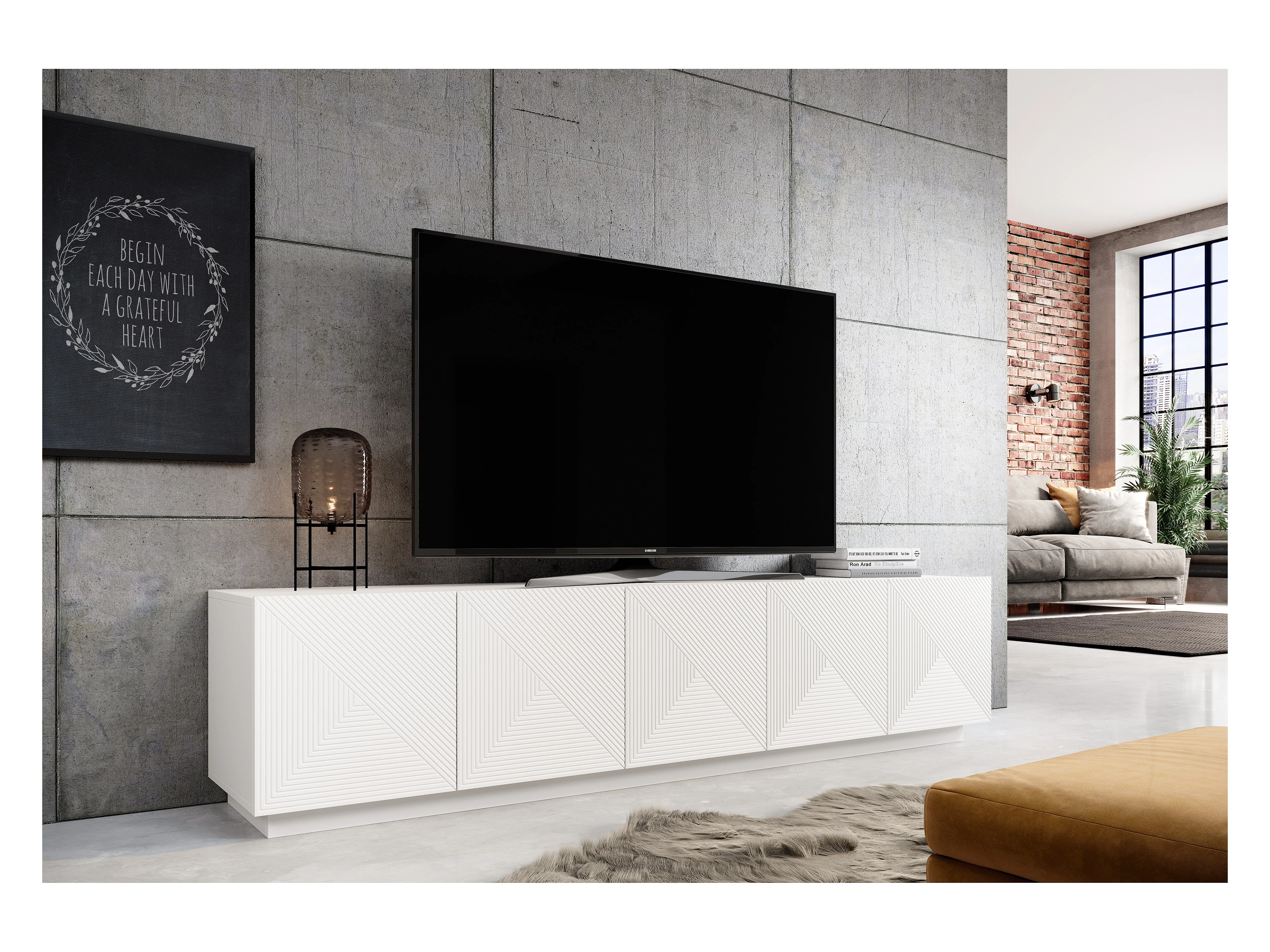Mueble TV 5 puertas blanco en madera laminada 200x40 cm
