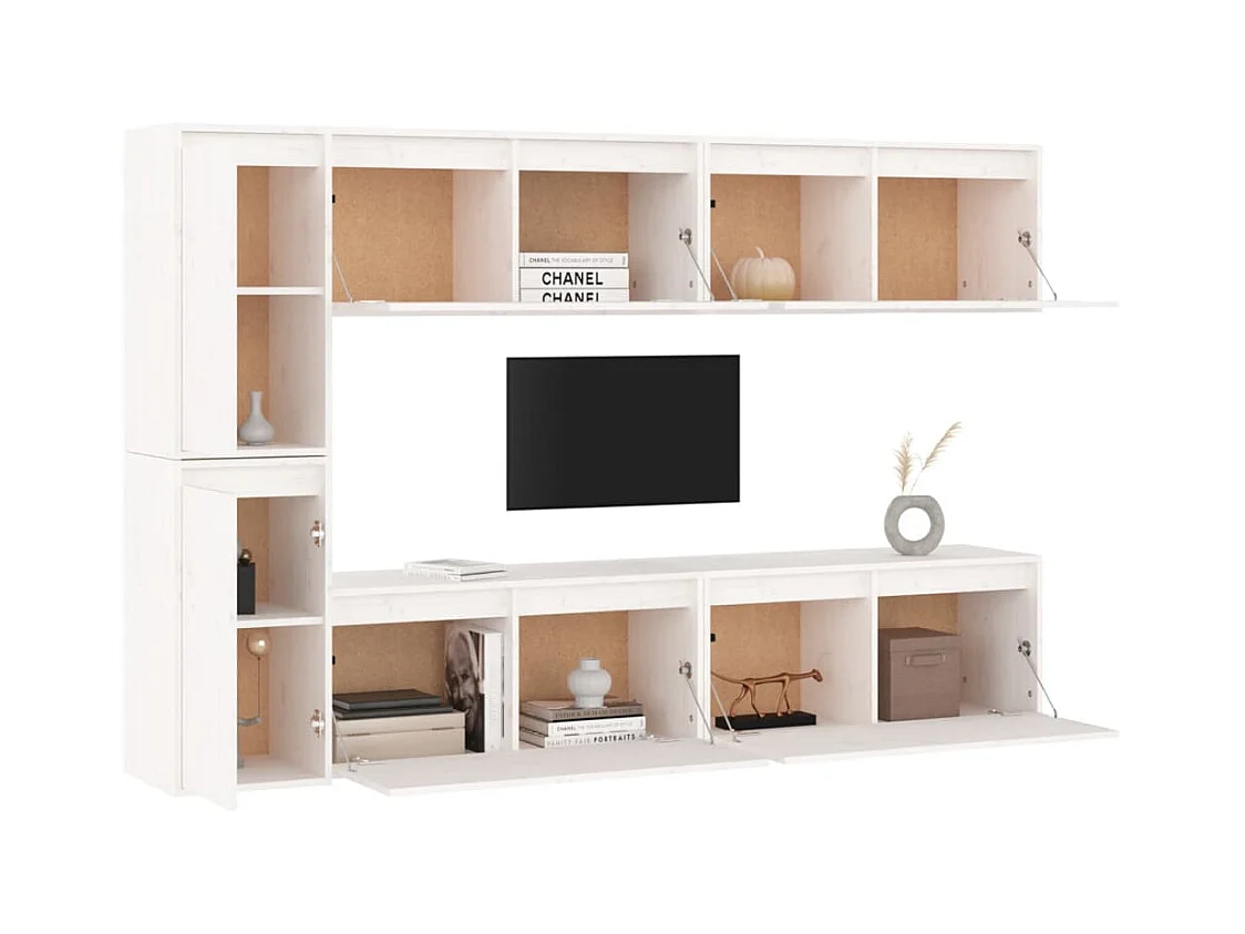 Mueble TV 6 piezas Blanco Madera maciza de pino