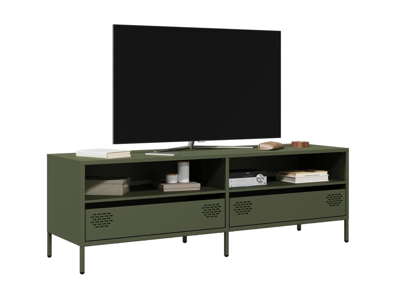 Mueble TV acero laminado en frío verde oliva 135x39x43,5 cm