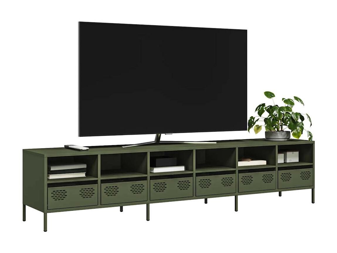 Mueble TV acero laminado en frío verde oliva 202x39x43,5 cm