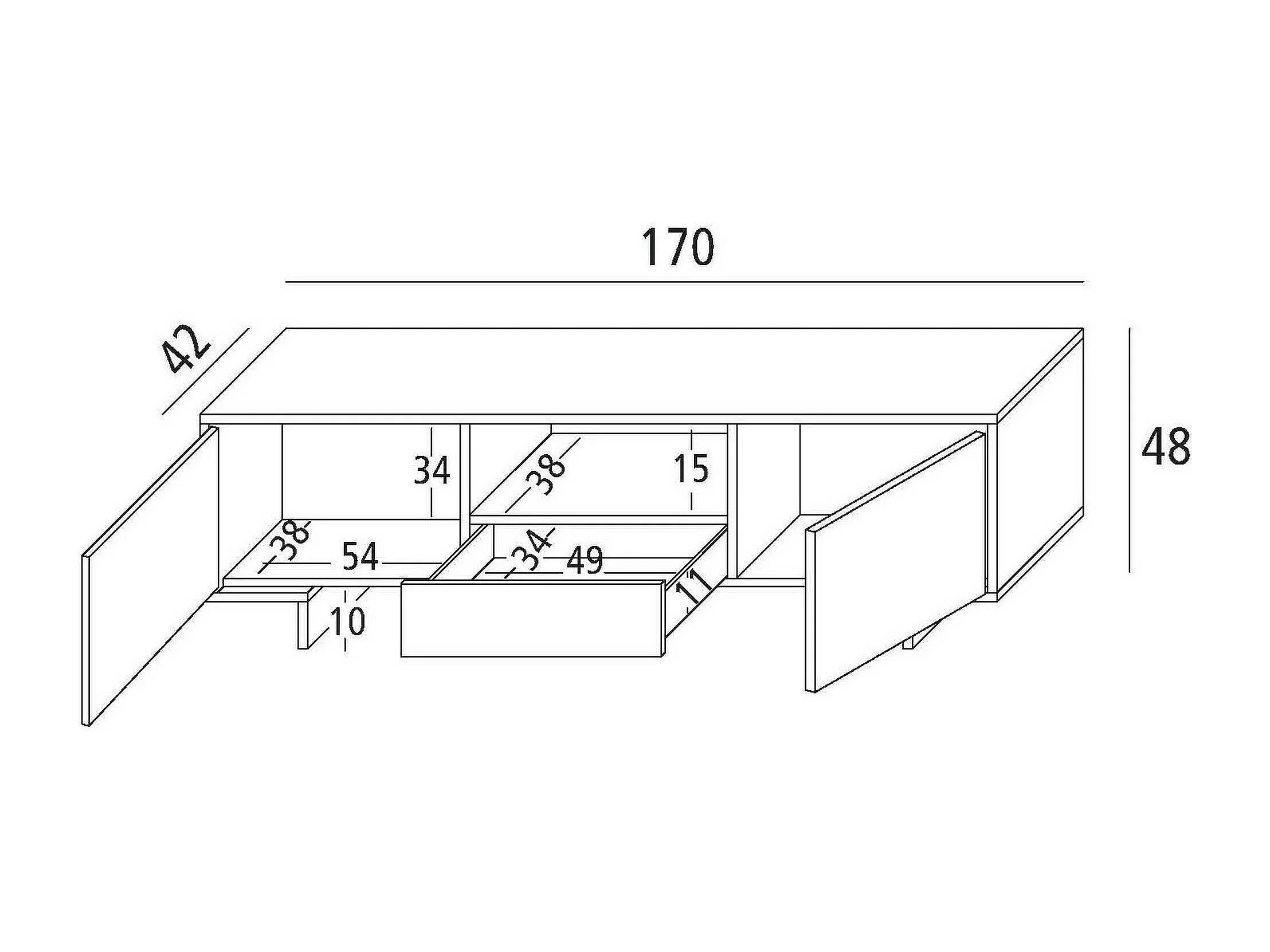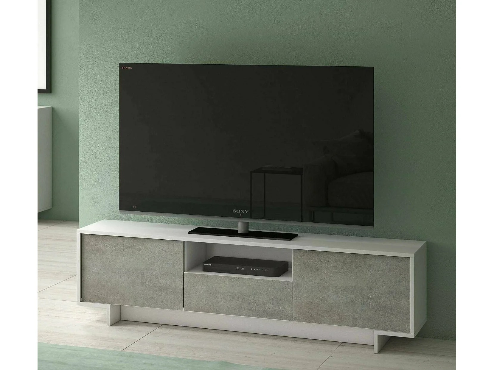 Mueble TV Andrómeda, Mueble TV para salón, Aparador bajo de salón con 2 puertas y 1 cajón, 100% Made in Italy, 170x42h48 cm, Blanco y Cemento