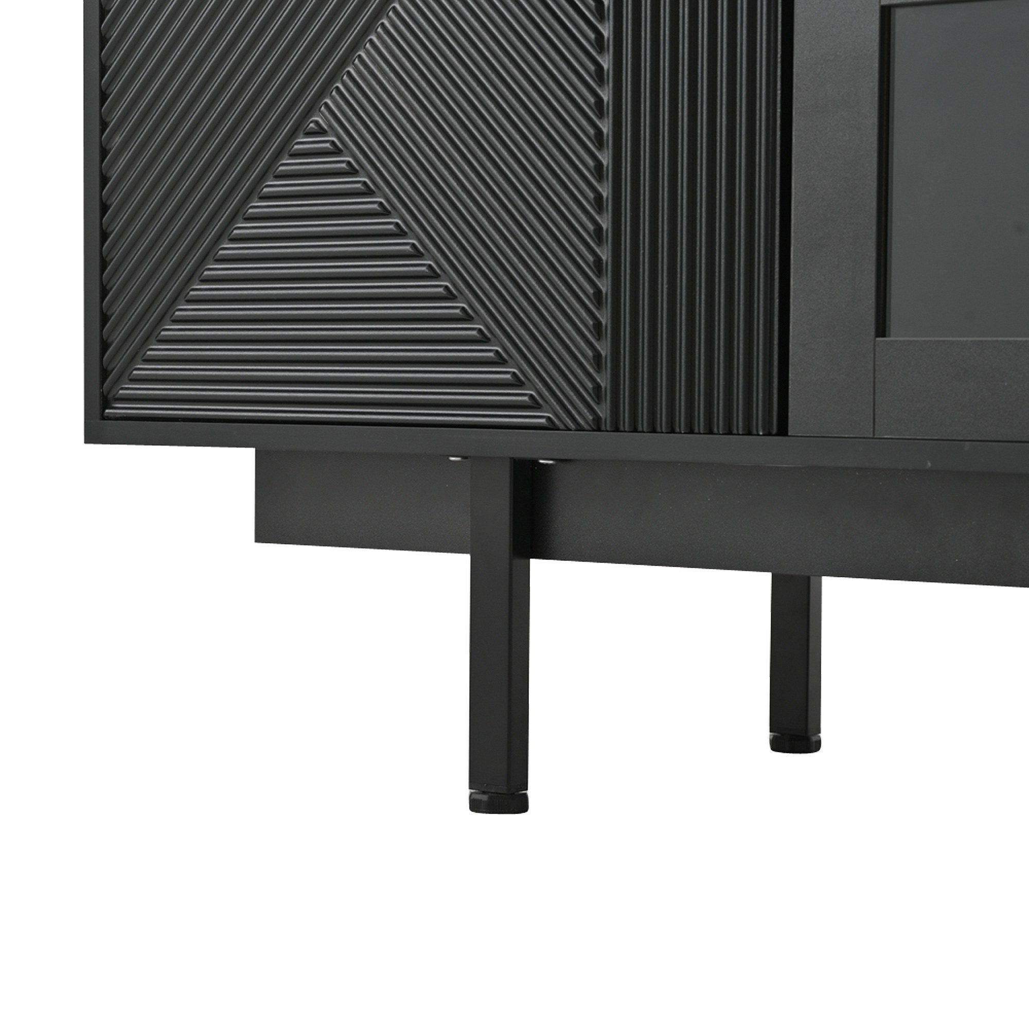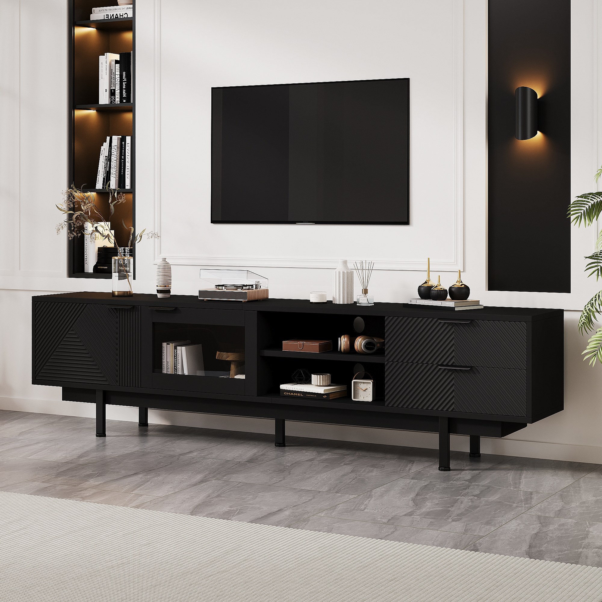 Mueble de TV negro de 200 cm con diseño geométrico bohemio para TV de 90 pulgadas
