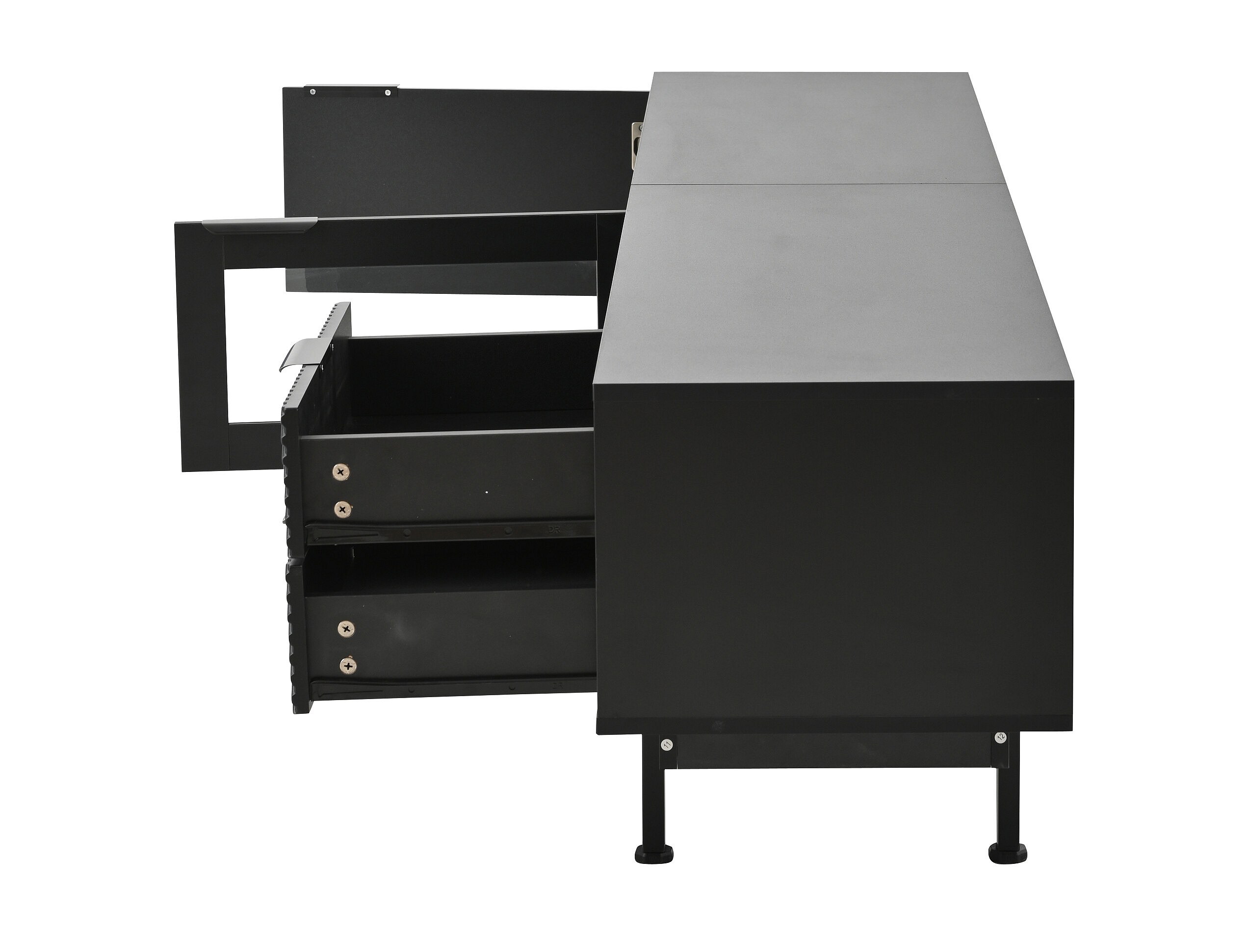 Mueble de TV negro con 2 cajones y 2 puertas correderas, de madera, para salón y dormitorio, 160 x 40 x 58 cm