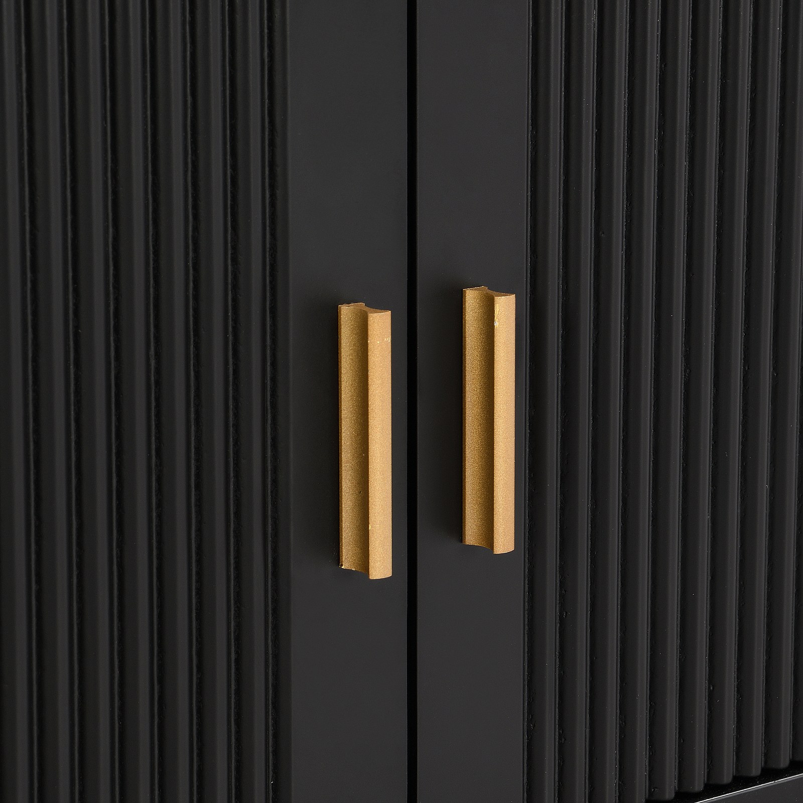 Mueble de TV de 175 cm MDF puertas y cajones negros patas doradas moderno salón almacenaje