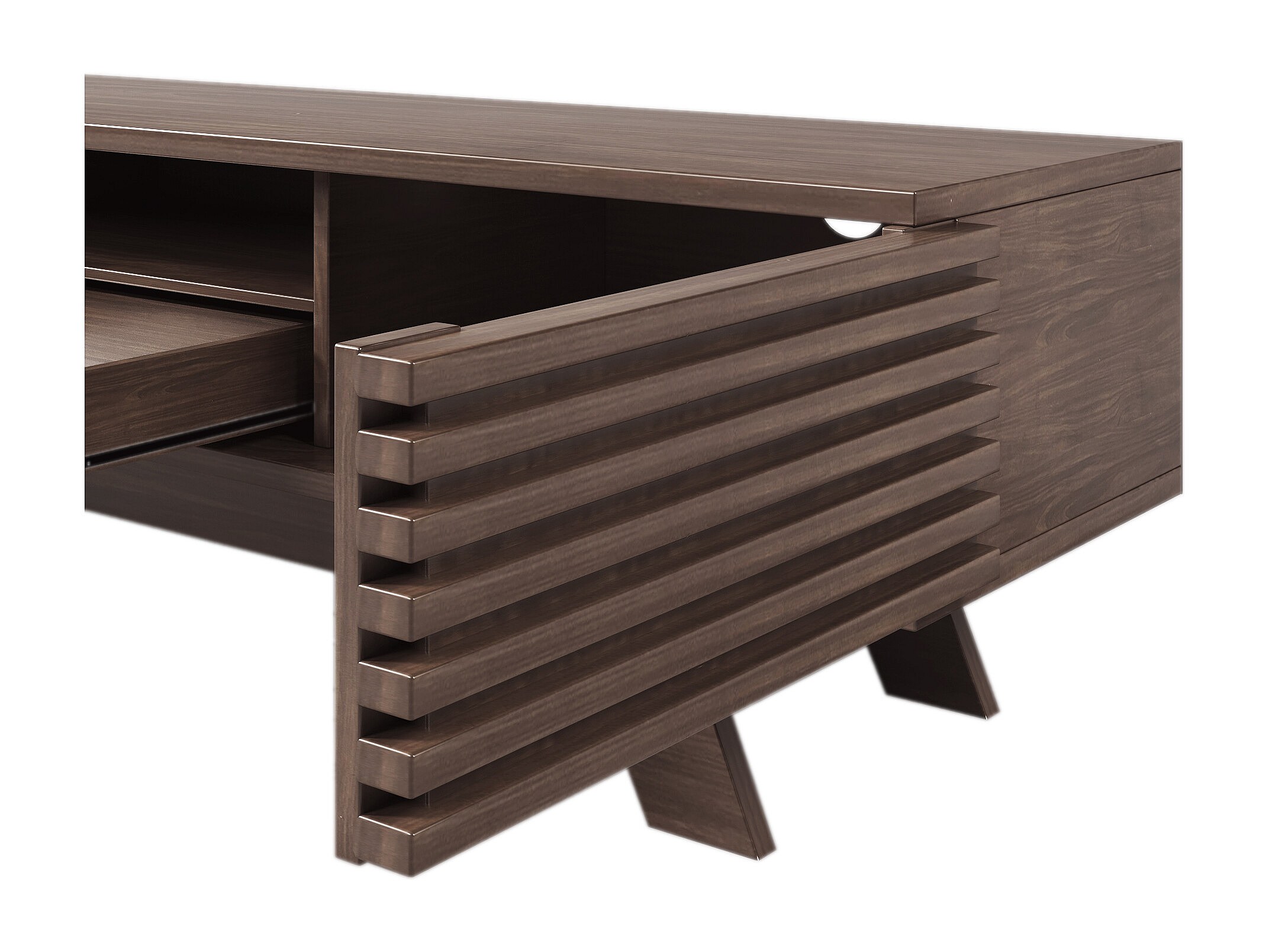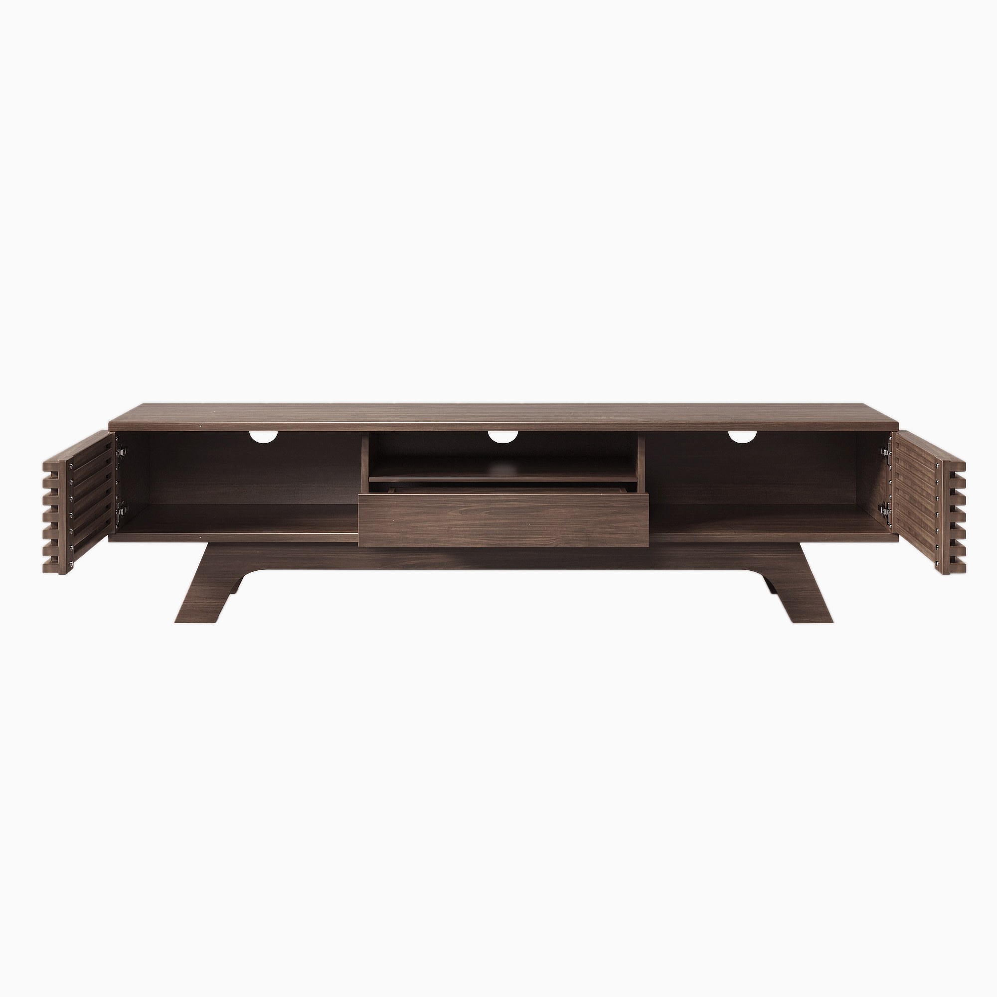 Mueble de TV de madera, con 2 puertas y 2 compartimentos, diseño tejido, 160 x 35,5 x 45 cm, color marrón