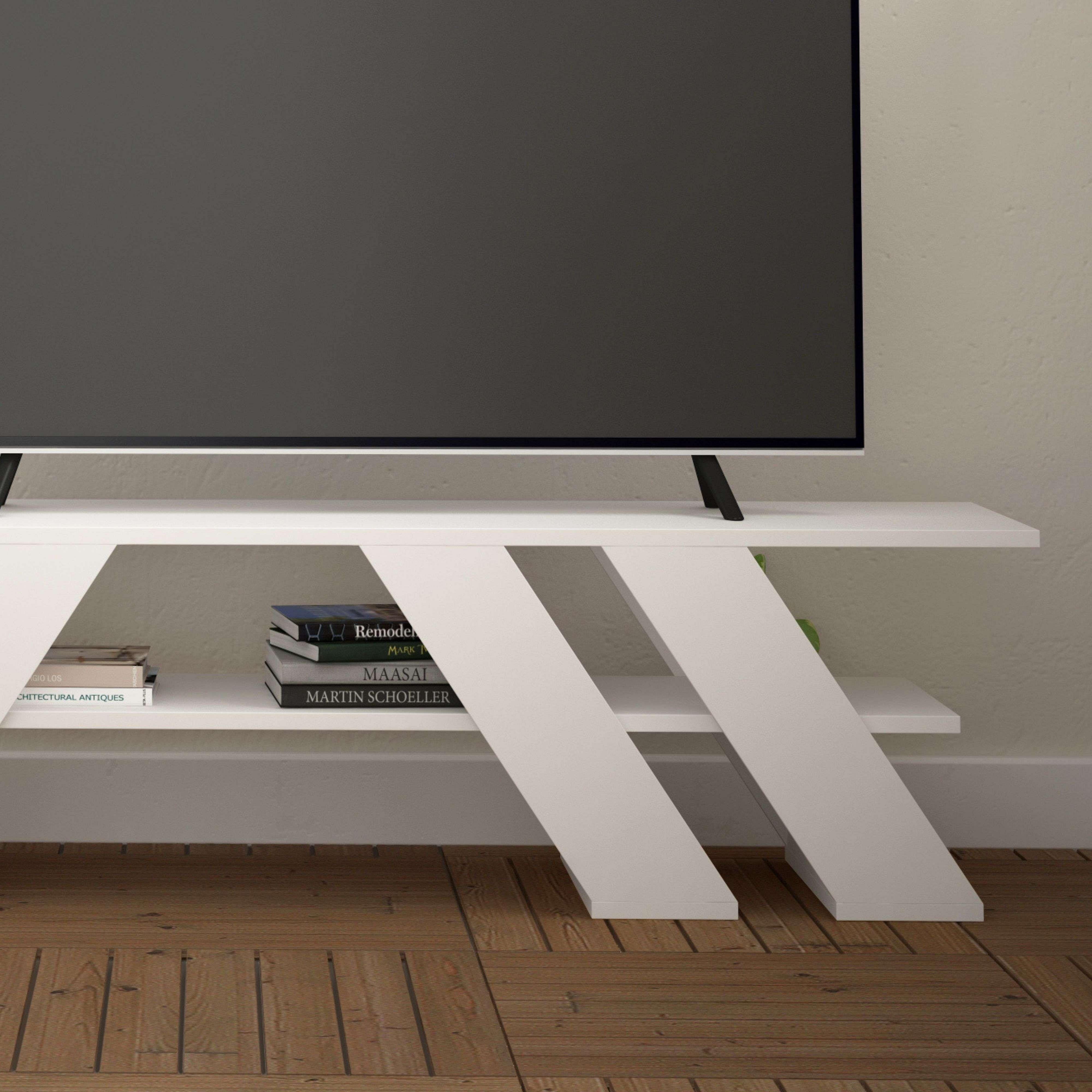 Soporte de TV blanco de 160 cm, diseño minimalista, 4 patas para TV de 65 pulgadas, sala de estar