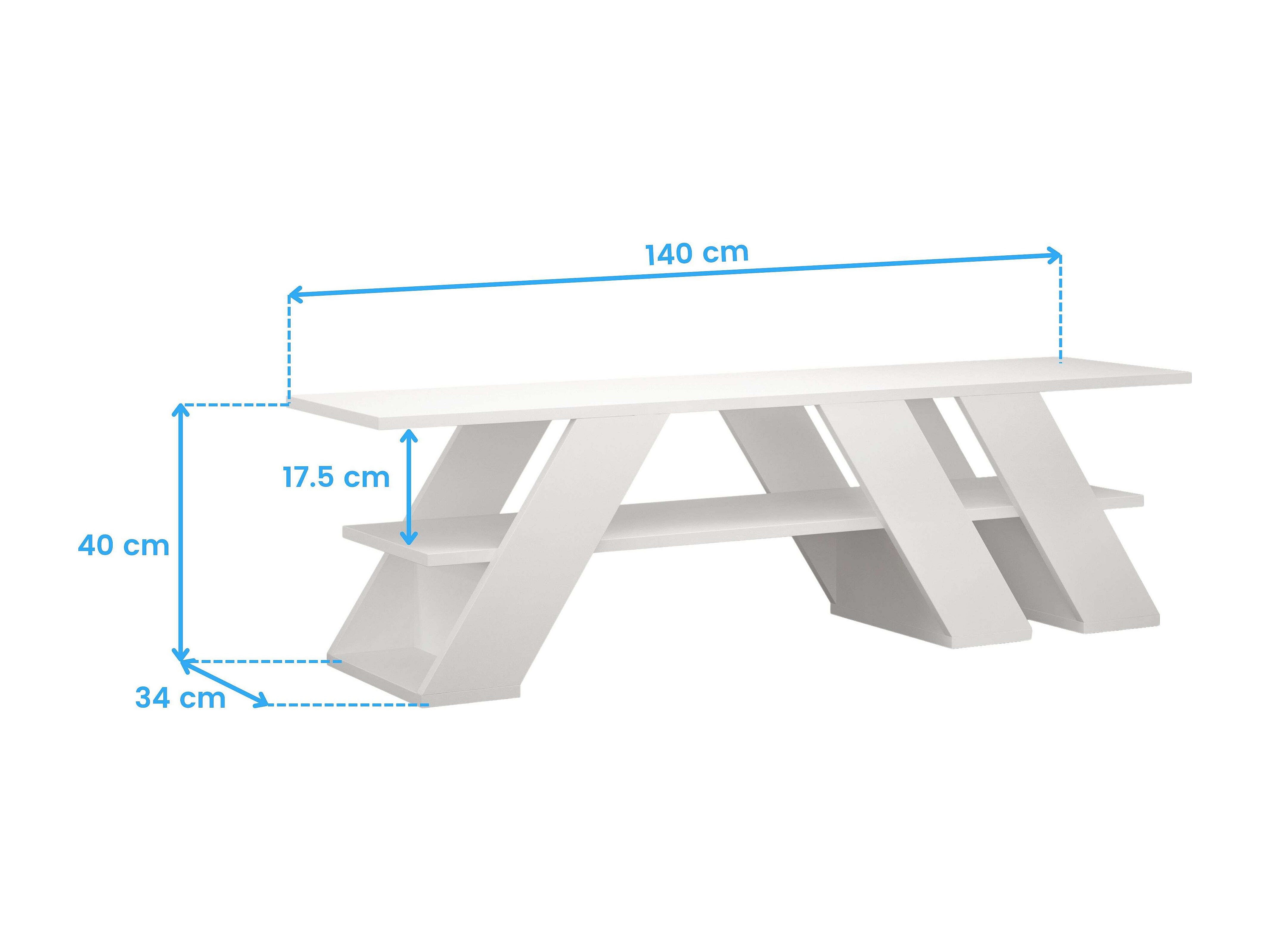 Mueble de TV blanco de 140 cm con 3 cajones y 3 estantes para TV de 75 pulgadas. Sala de estar.