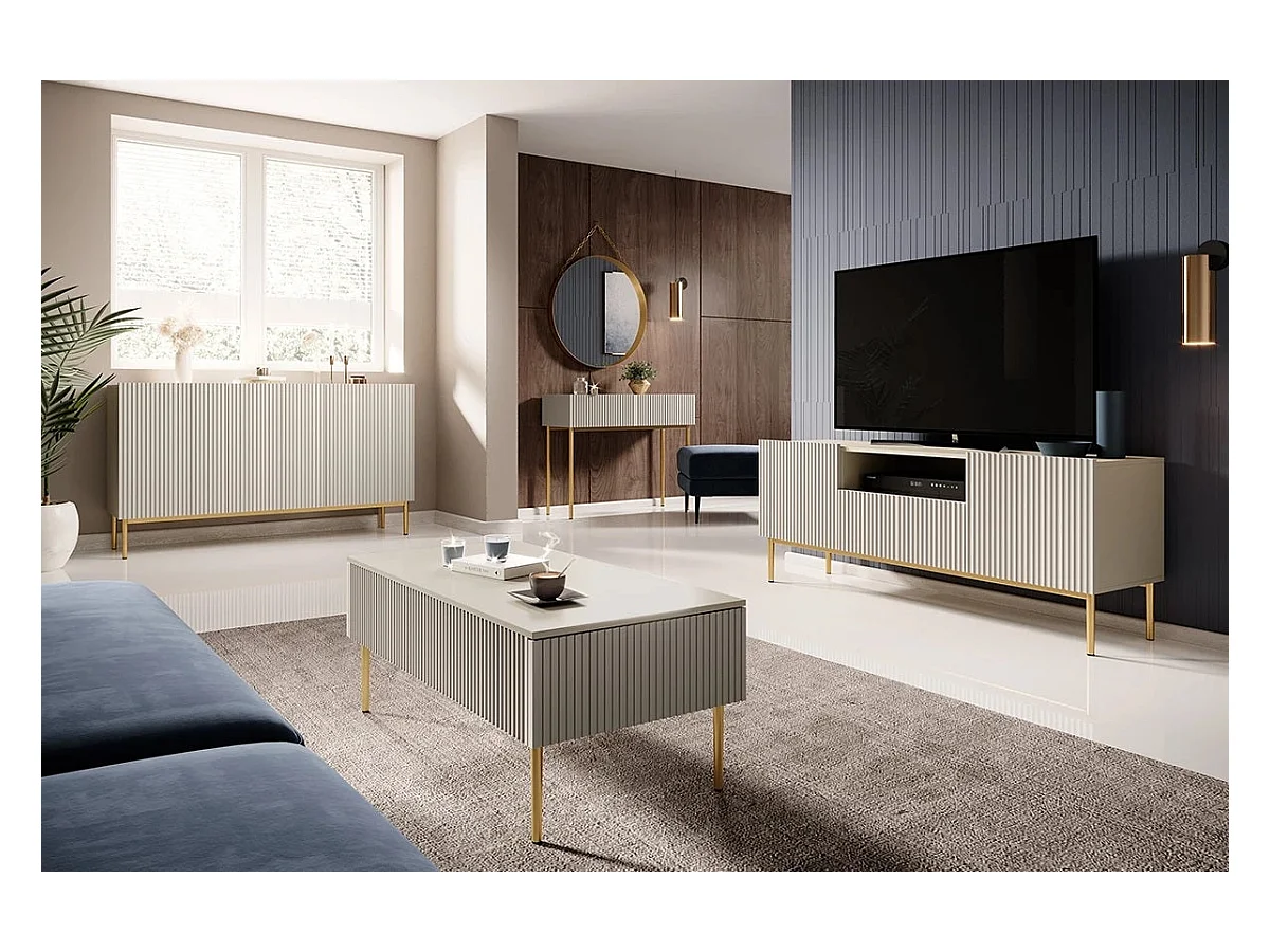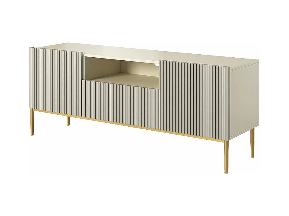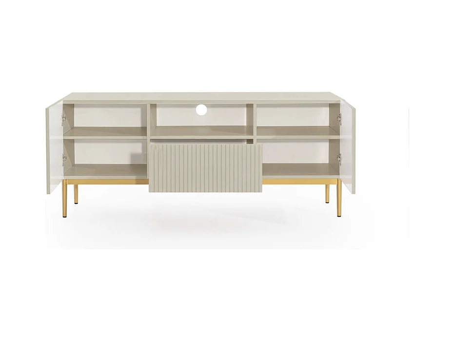 Mueble TV cashmere con 2 puertas y 1 cajón con pie de metal dorado 150x45 cm