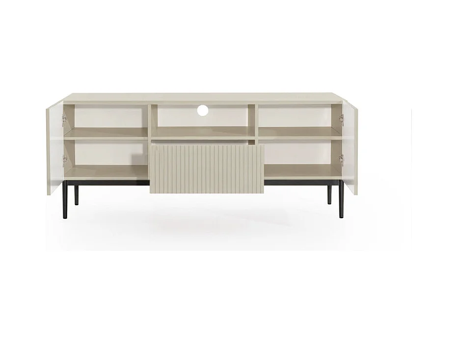 Mueble TV cashmere con 2 puertas y 1 cajón con pie de metal negro 150x45cm