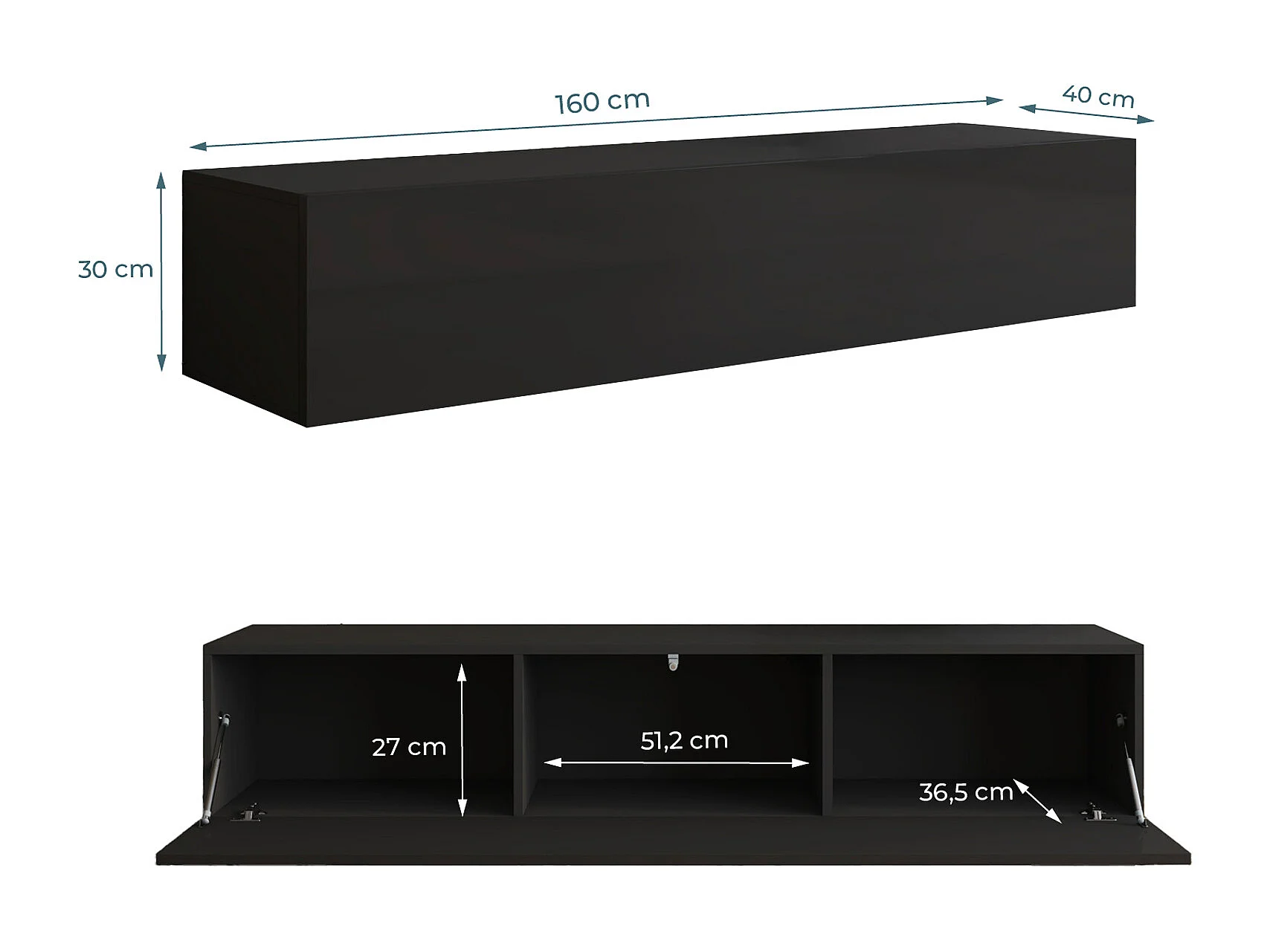 Mueble TV colgante para Salón comedor en Negro 160x40x30cm Nora H2