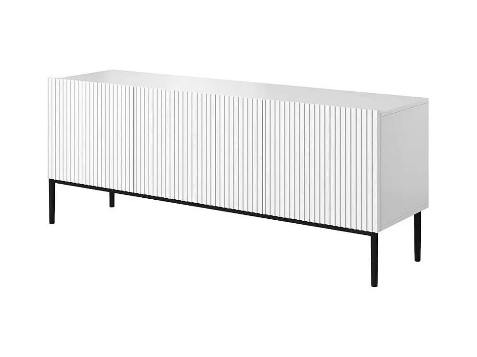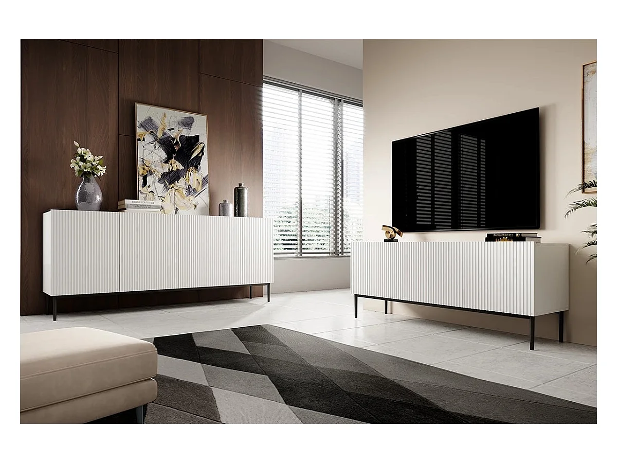 Mueble TV blanco con 2 puertas y 2 cajones con pie de metal negro 200x45 cm