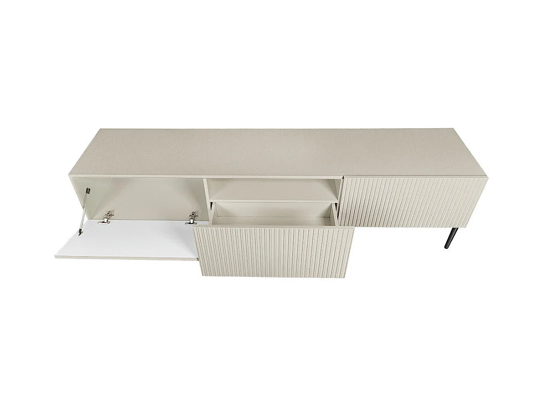 Mueble TV con 2 puertas abatibles y 1 cajón de cashmere con pie negro 200x45 cm