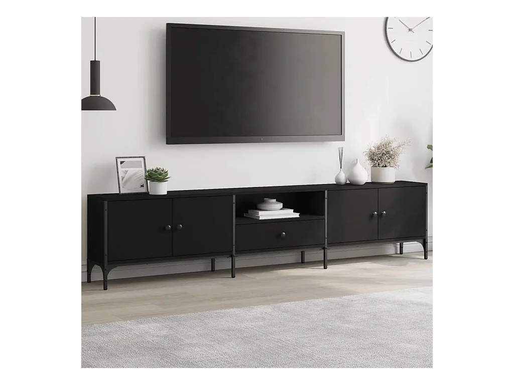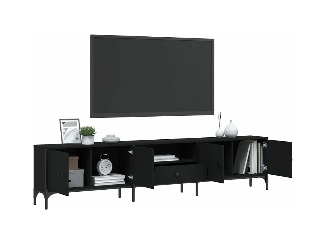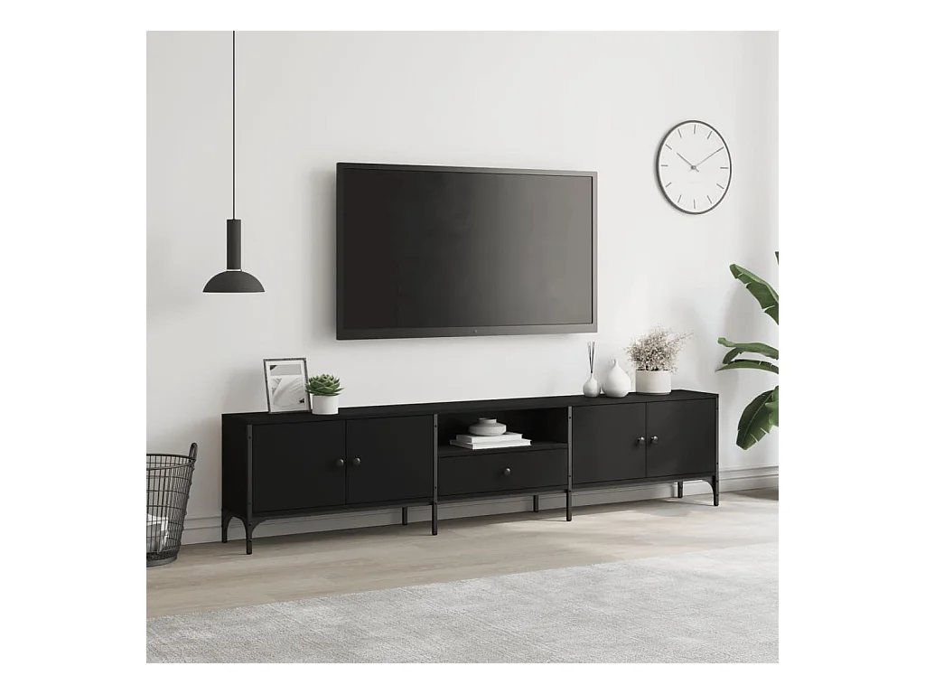 Mueble TV con cajón madera de ingeniería negro 200x25x44 cm YOE91044