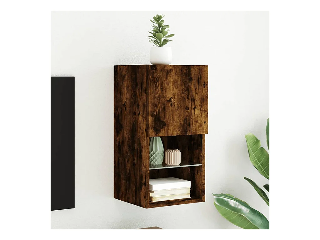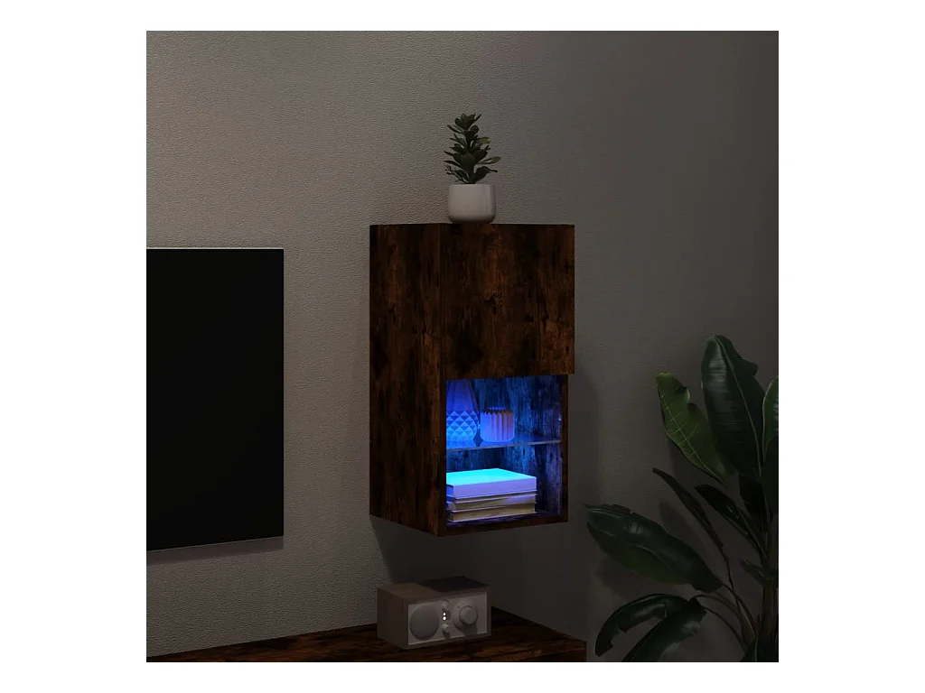 Mueble TV con luces LED roble ahumado 30,5x30x60 cm YOE89395