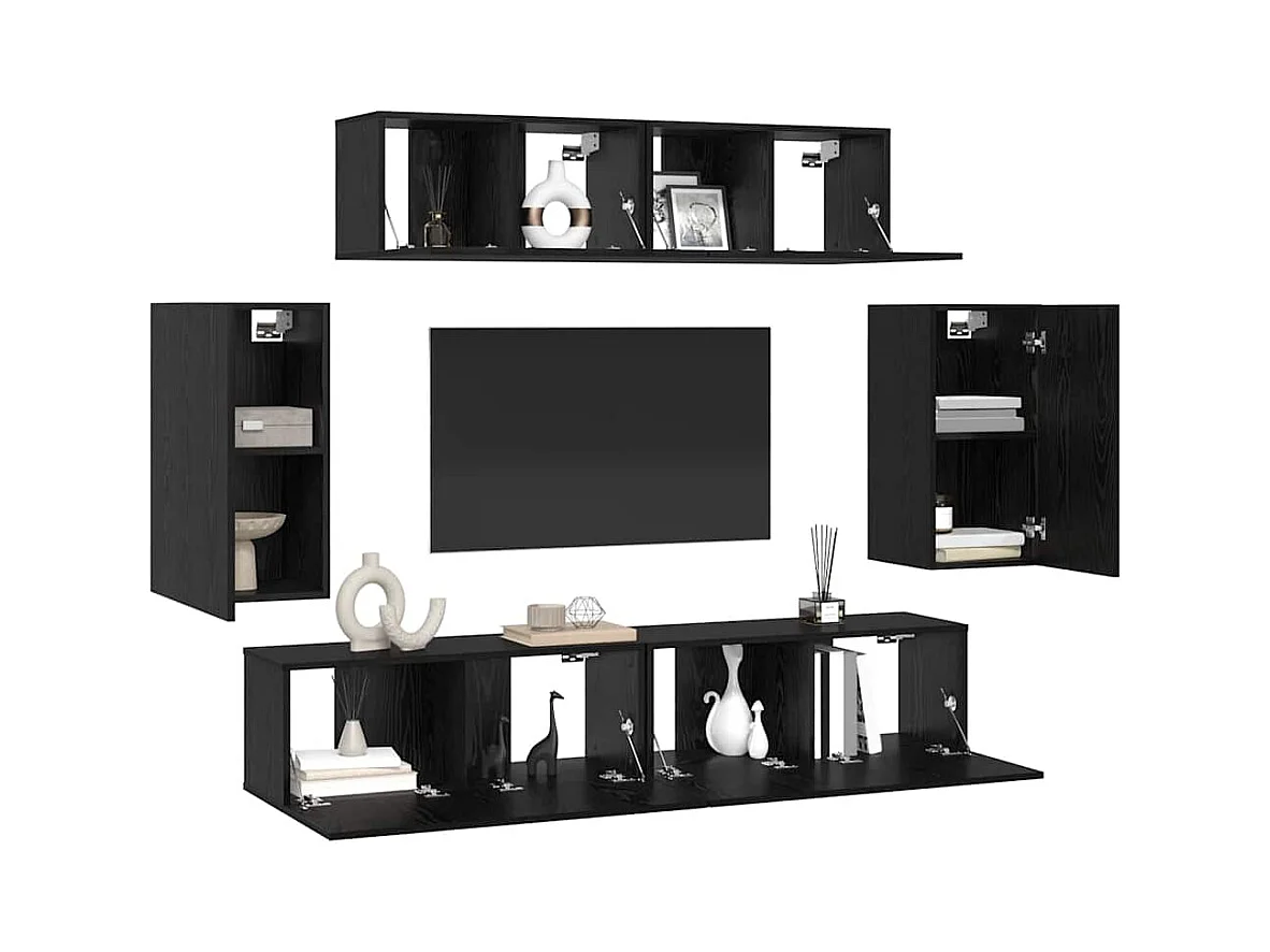 Conjunto de Mueble de TV | Mueble de salón Montaje en la pared 6 pcs Roble Negro