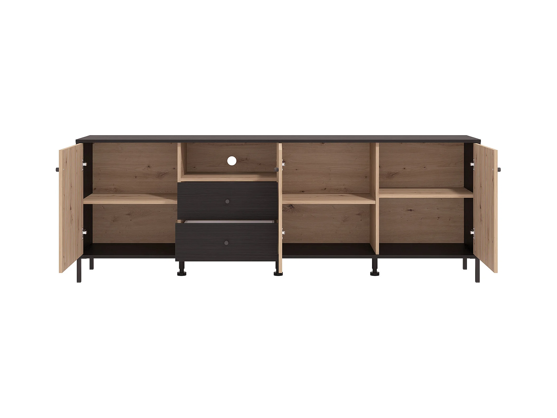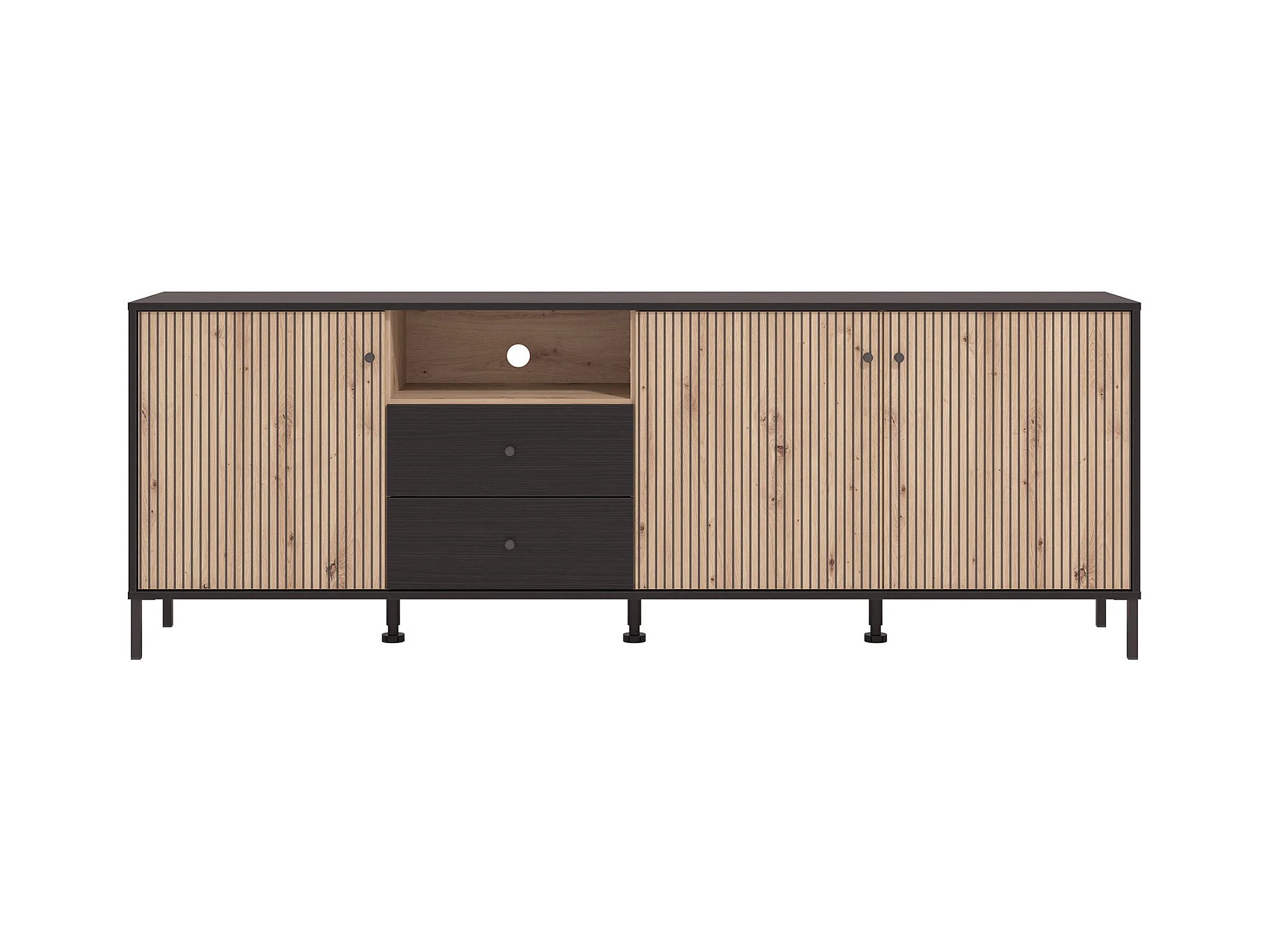 Mueble TV de 74x208x40 cm melamina y frentes alistonados color ébano y roble artisan Tania