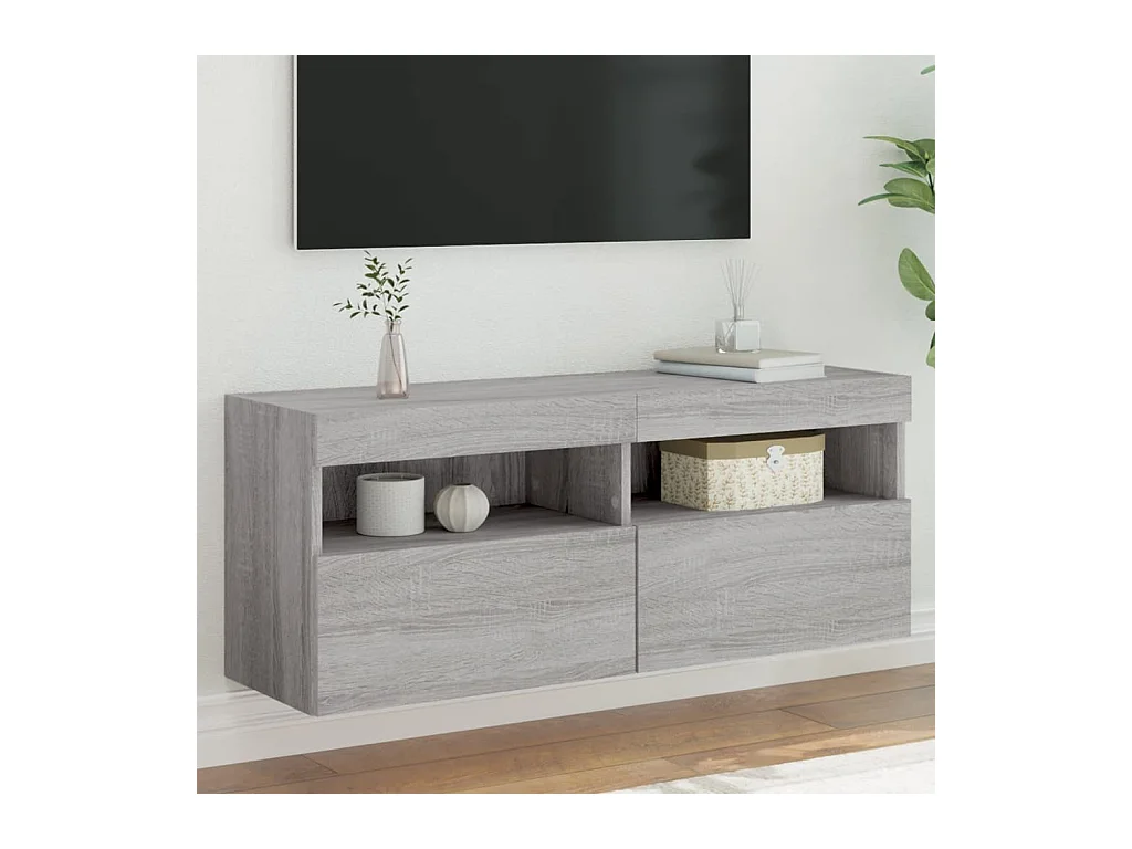 Mueble TV de pared con luces LED gris Sonoma 100x35x41 cm ES30698
