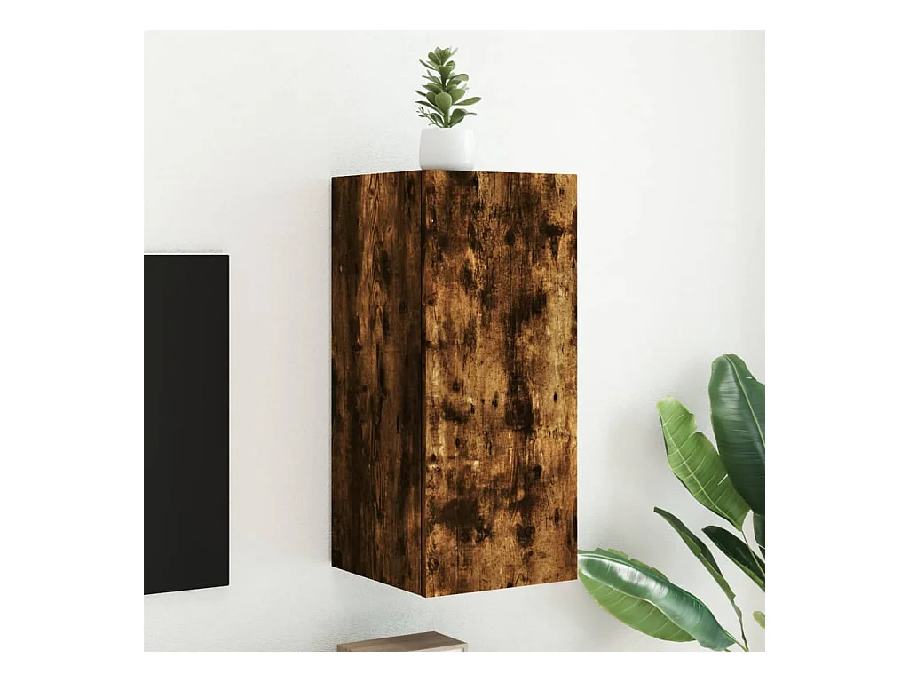 Mueble TV de pared con luces LED roble ahumado 30,5x35x30 cm ES13981