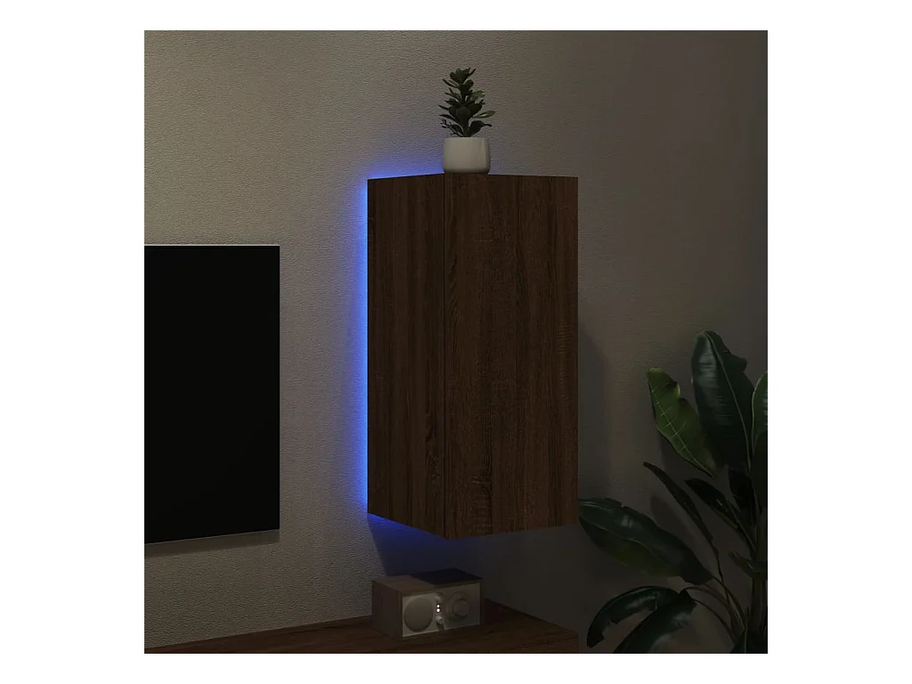 Mueble TV de pared con luces LED roble marrón 30,5x35x30 cm ES86625