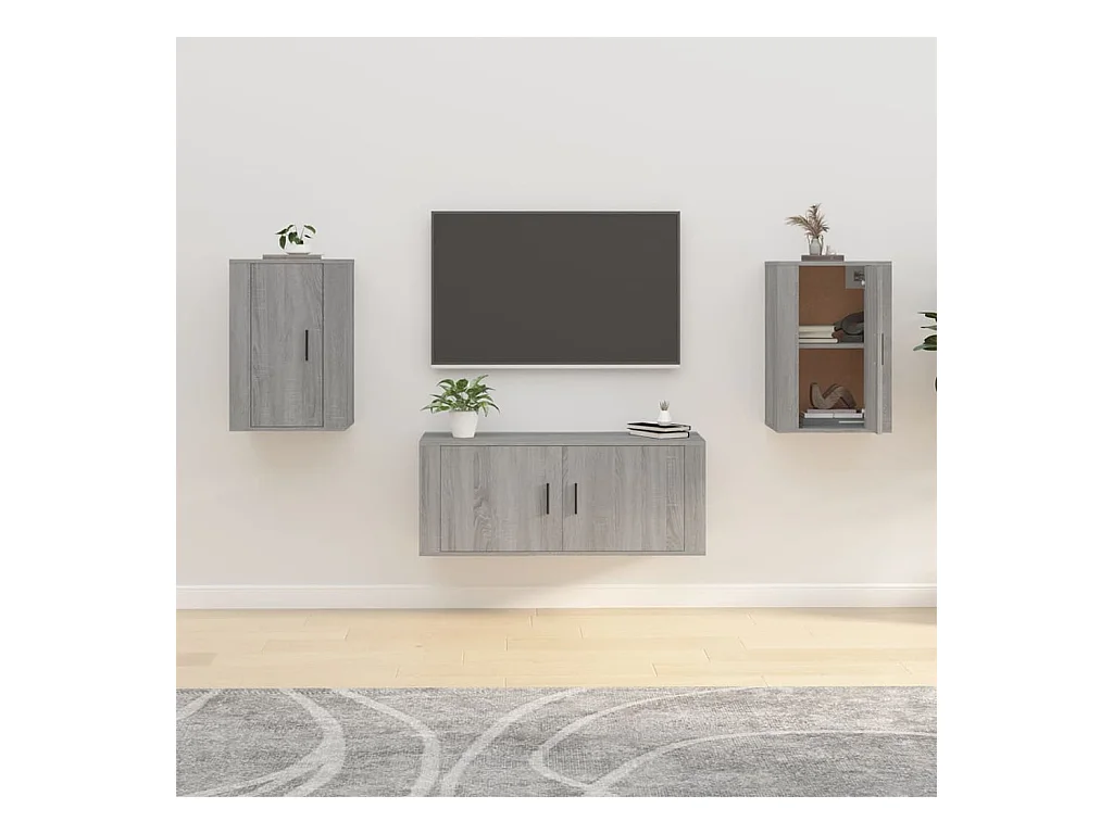 Conjunto de soporte para TV de 3 piezas en madera de ingeniería color gris Sonoma