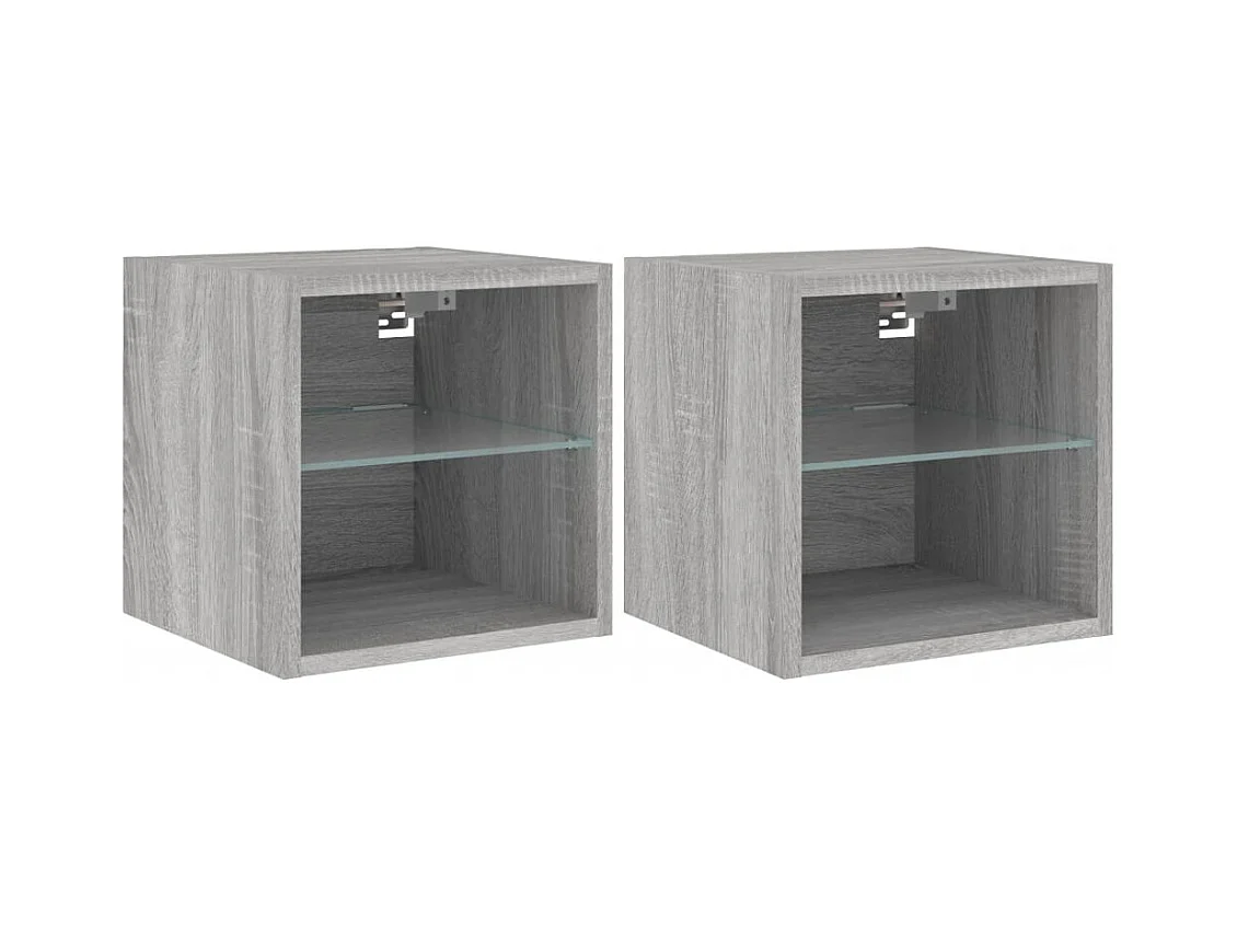 Mueble TV de pared estantería multimedia aparador televisión TV comedor salón dormitorio y luces LED 2 piezas sonoma 30,5 x 35 x 30 cm gris 02_0029148