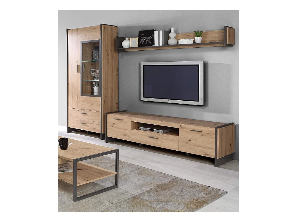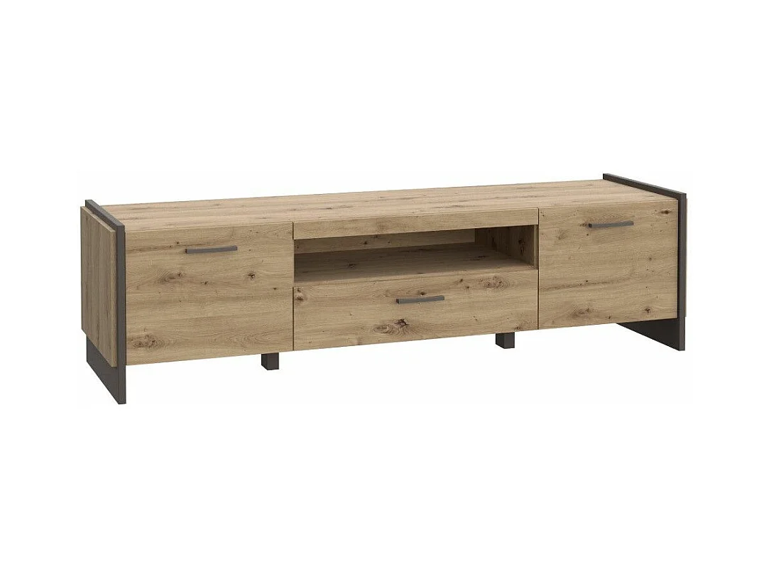Mueble TV 2 puertas 1 cajón 160 cm Aksel Blanco y Madera