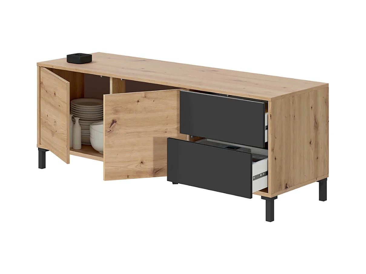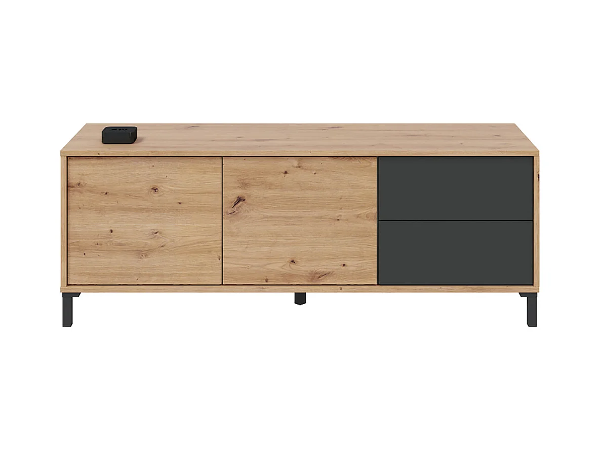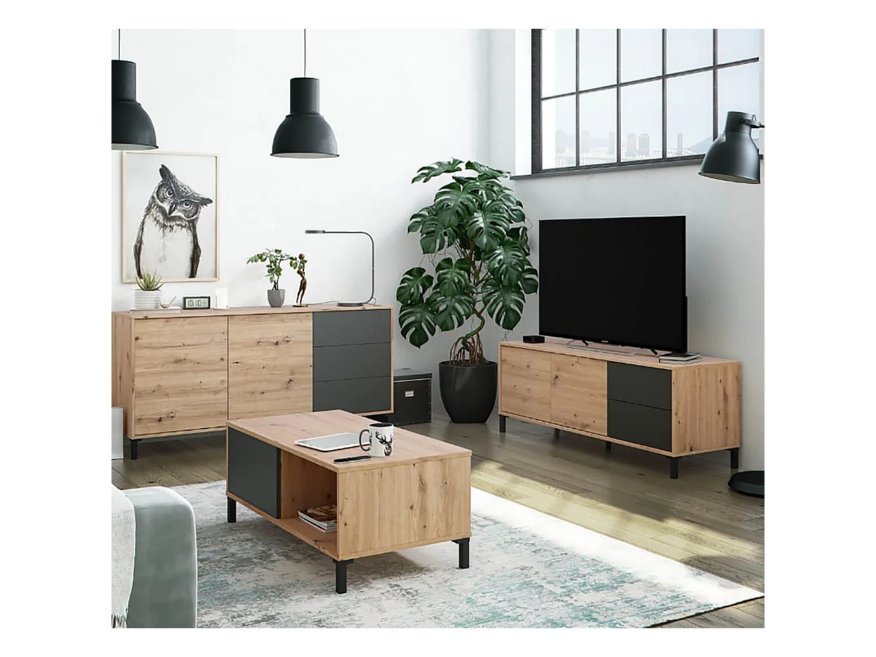 Mueble TV en melamina Color Roble y Gris Antracita - Altura 47 x Longitud 130 x Profundidad 41 cm